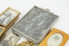 Bland annat tenn- och träramar. Bruks- och åldersrelaterat slitage. Några saknar glas och bakstycke.