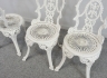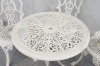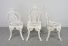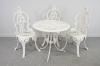 Bord och fyra stolar i aluminium. Bordets diameter 70, höjd 64 cm. Stolarnas höjd 92, sitthöjd 40 cm.