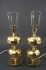 Mässing. Två skärmar medföljer. Höjd med skärm 66 cm, höjd utan 37 cm.
