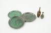 Underlägg, 3 st, Wilhelm Kåge, Argenta, Gustavsberg, diameter ca 9 cm. Miniatyrvaser, John Andersson, Höganäs, signerade, höjd 4,5 resp. 7 cm.