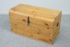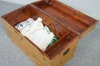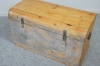 Textilier medföljer. Bredd 86 cm. Höjd 48 cm. Djup 43 cm. Bruksslitage. Lås bortplockat. Färgfläckar.