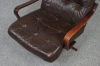 Klädsel i skinn. Höjd på fåtölj 95 cm. Bruksslitage.