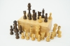 Schackpjäser i trä, samt bräde i masonit.