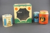 Större burken är den genomskinliga plasten lös. Slitage.
