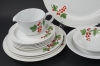 5 koppar med fat. 5 assietter. 2 tallrikar, diameter 24 cm. 1 tallrik, diameter 27 cm. 1 fat, diameter 34 cm. 1 kanna. 1 skål. 1 djup tallrik.