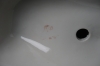 Avslag på två av älgens taggar. Nagg på en fiskfena.