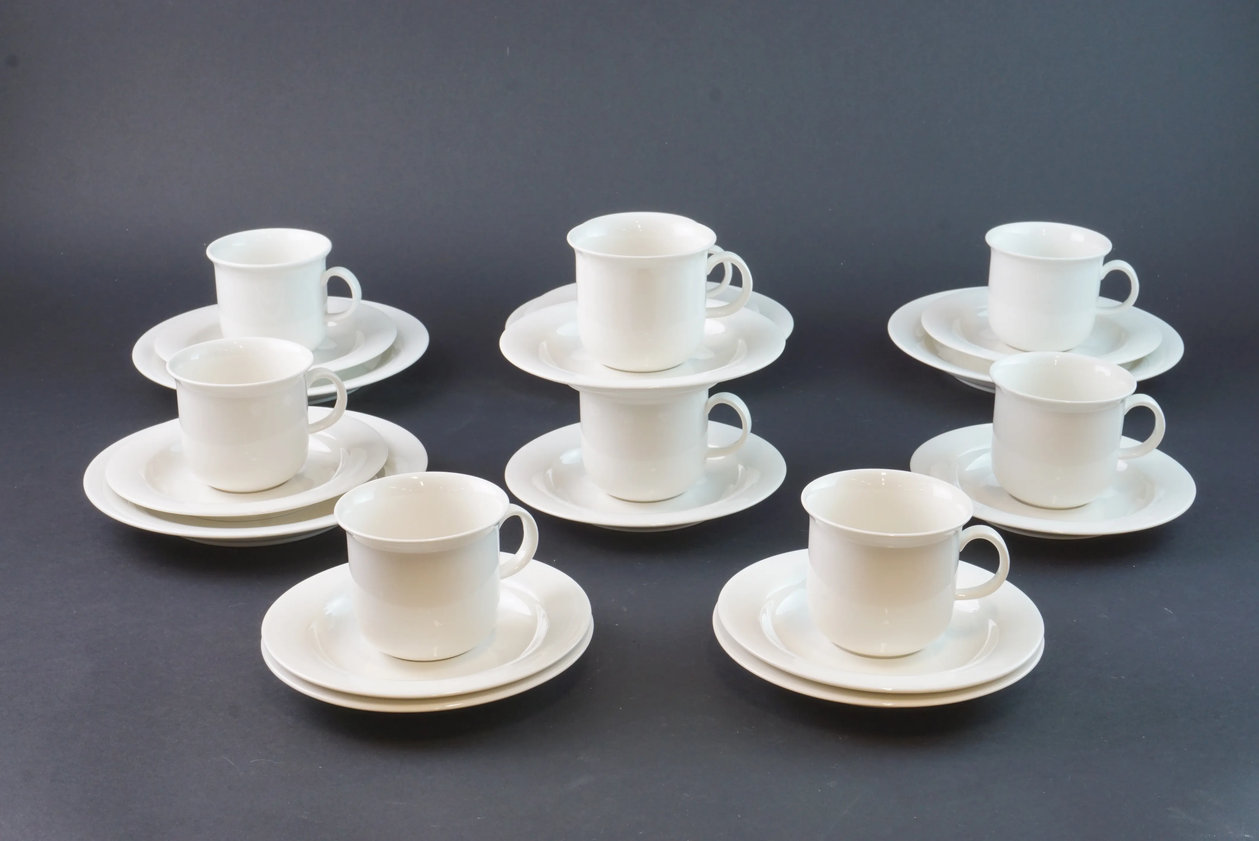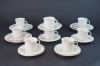 Formgiven av Inkeri Leivo för Arabia Finland, vit keramik/porslin 9 st Kaffekoppar 11 st Fat 4 st Assietter (mått 17cm)