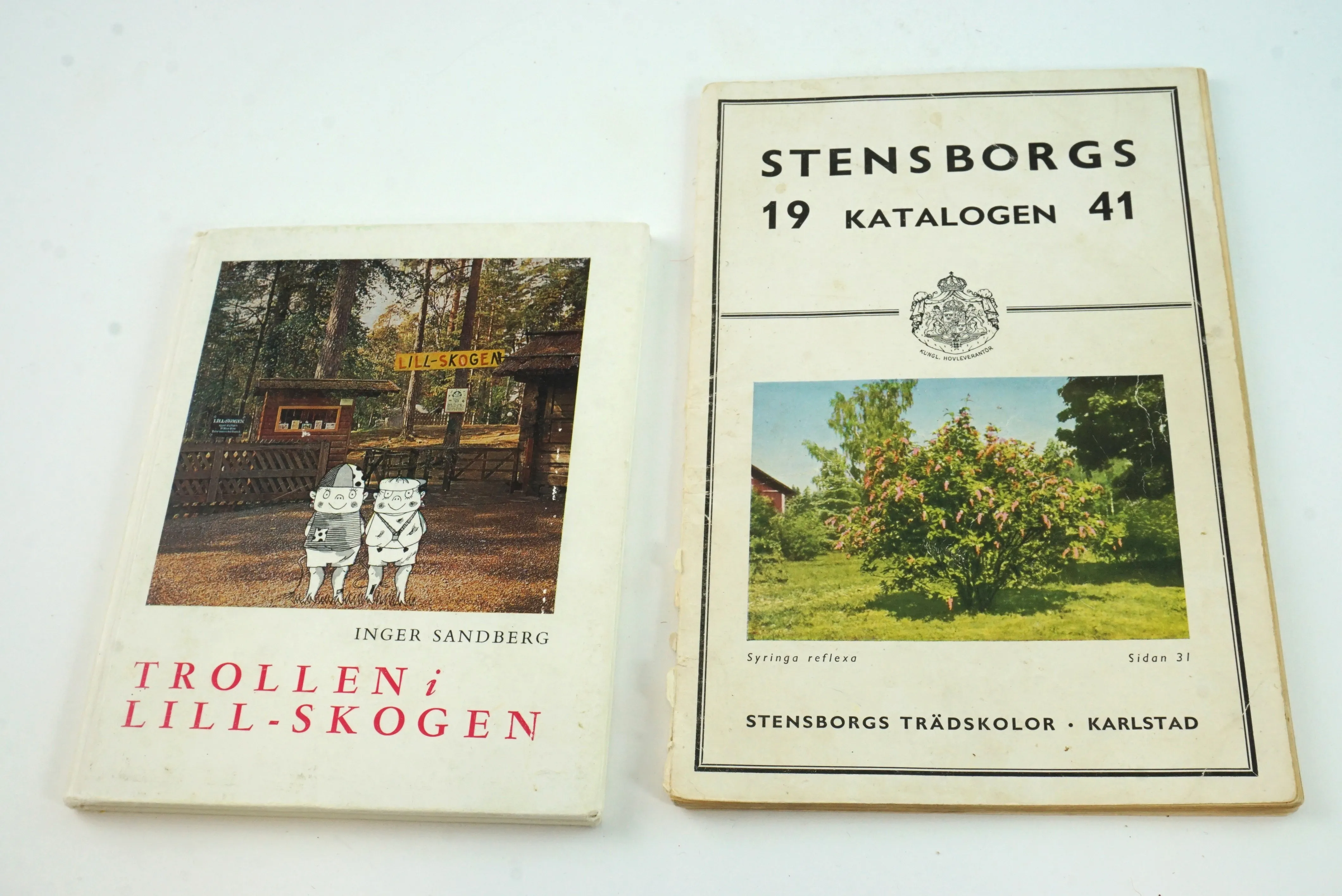 Stensborgskatalog från 1941 samt Inger Sandbergs bok om Trollen i Lill-skogen (Mariebergsskogen) från 1963