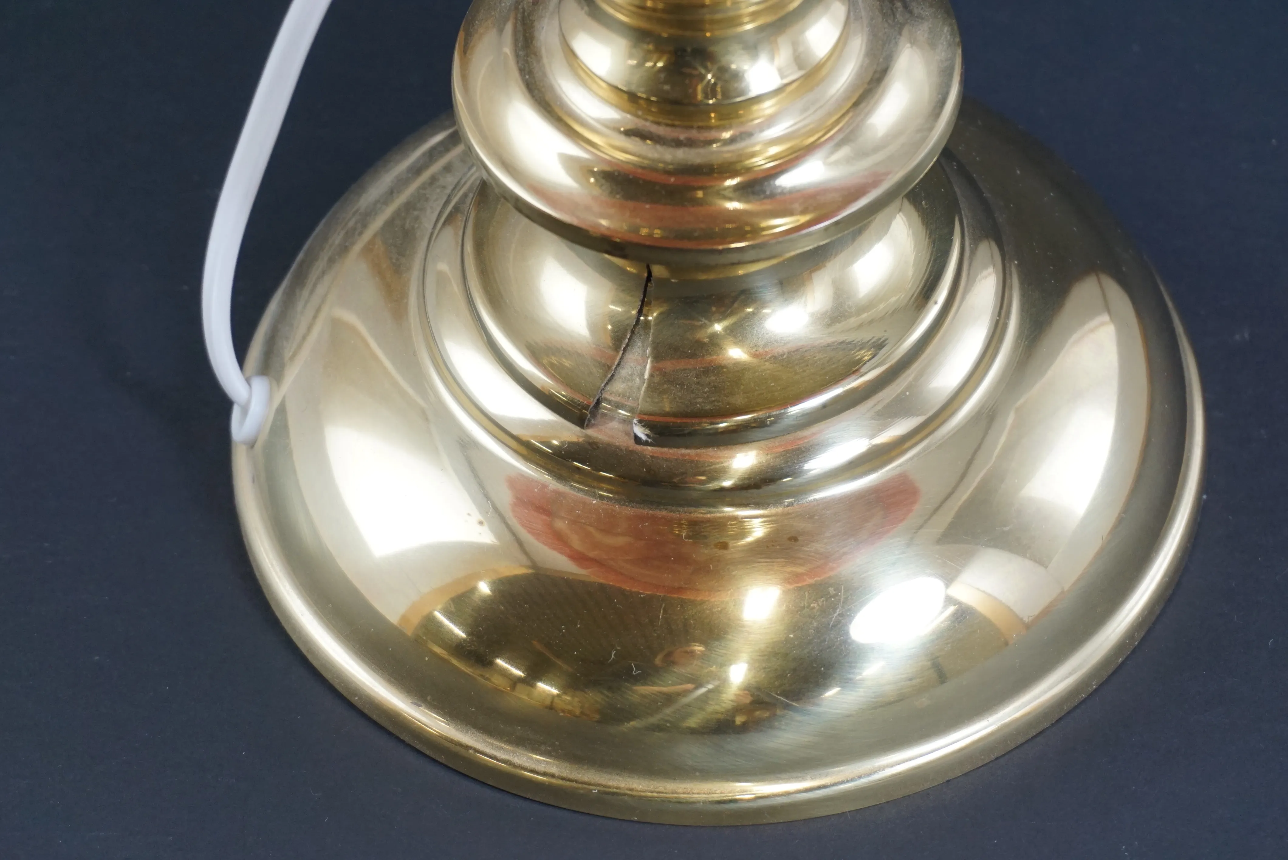 Höjd: Lampfot ca 47 cm, med skärm ca 70 cm Spricka i metallen på fot- se bild.