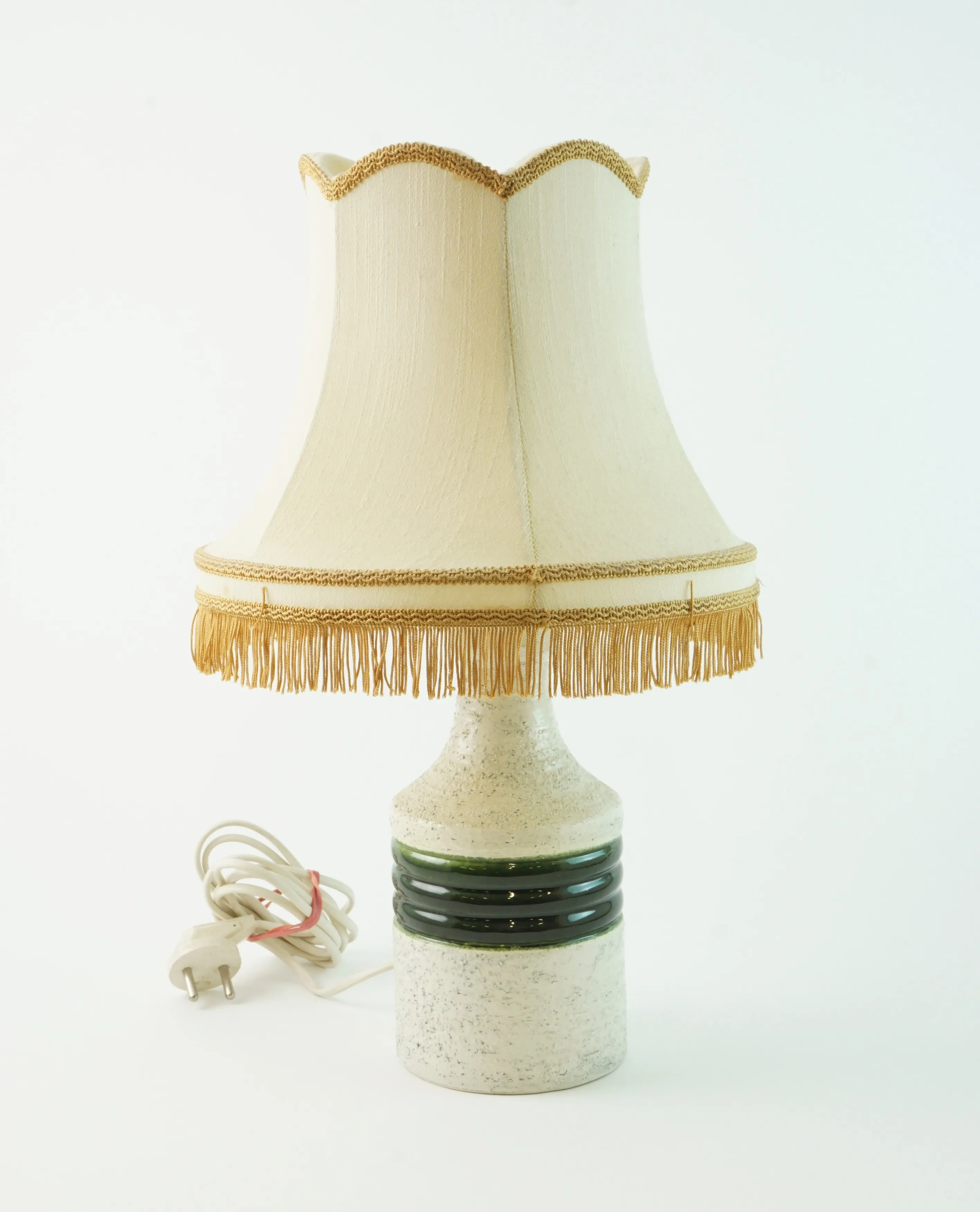 Höjd lampfot inklusive lamphållare: 28 cm. Defekt skärm. Ej funktionstestad.