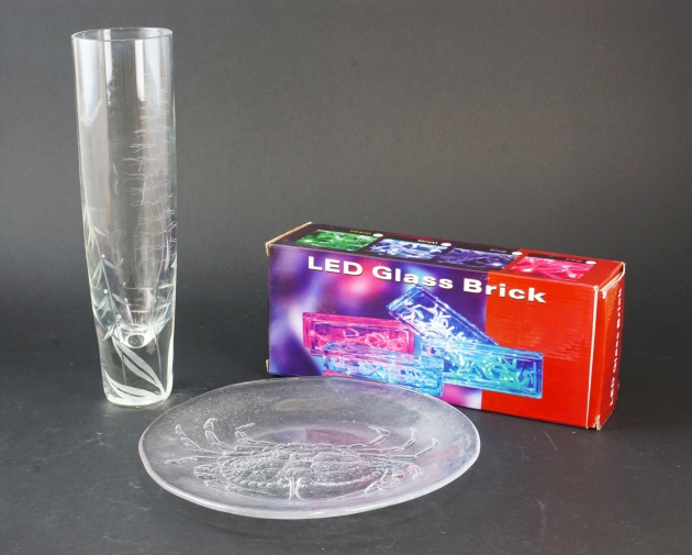 Fat "Party Marina" Kosta Boda av Göran Wärff, vas otydligt signerat, LED glass brick. Höjd vas: 31,5cm.