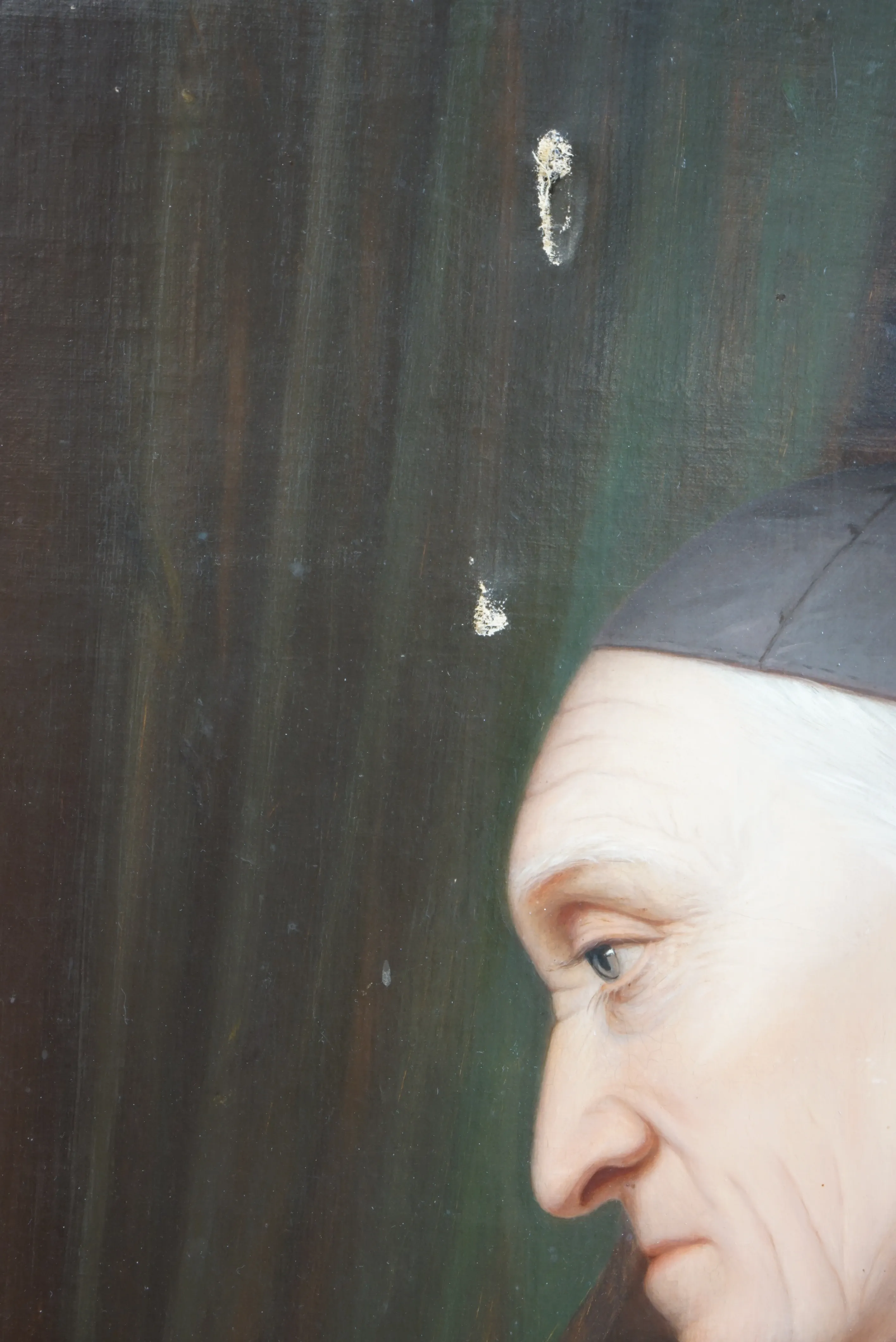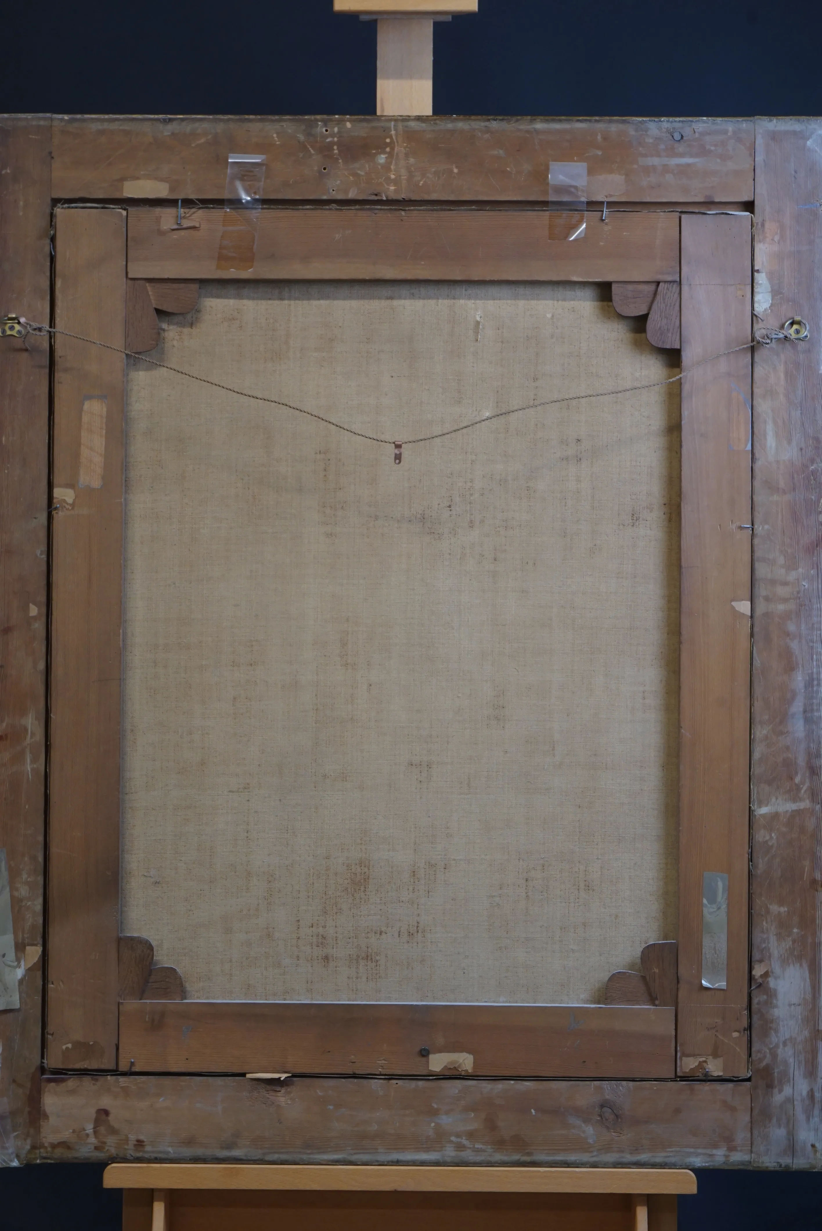 Dukmått ca 70x90 cm, hål i duk på 2 ställen. Praktram med skador
