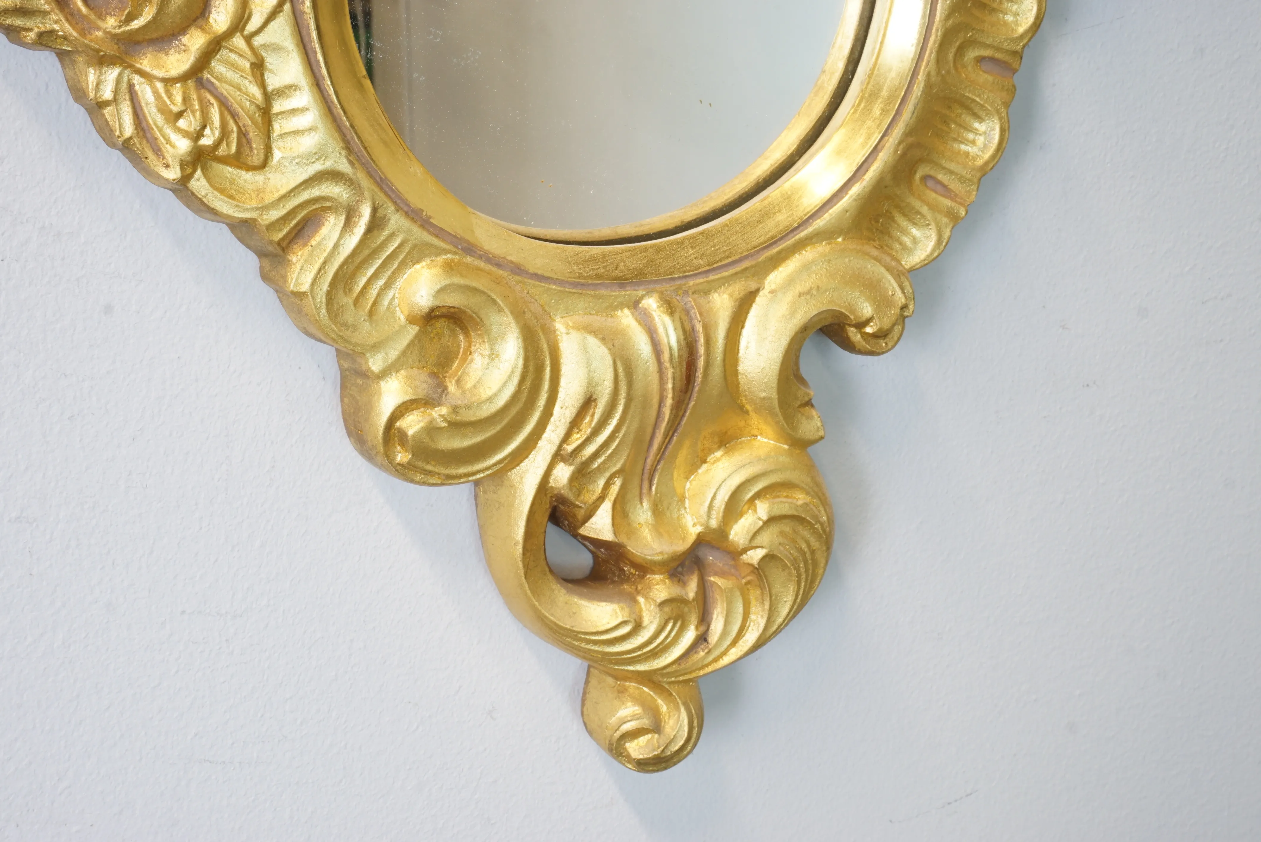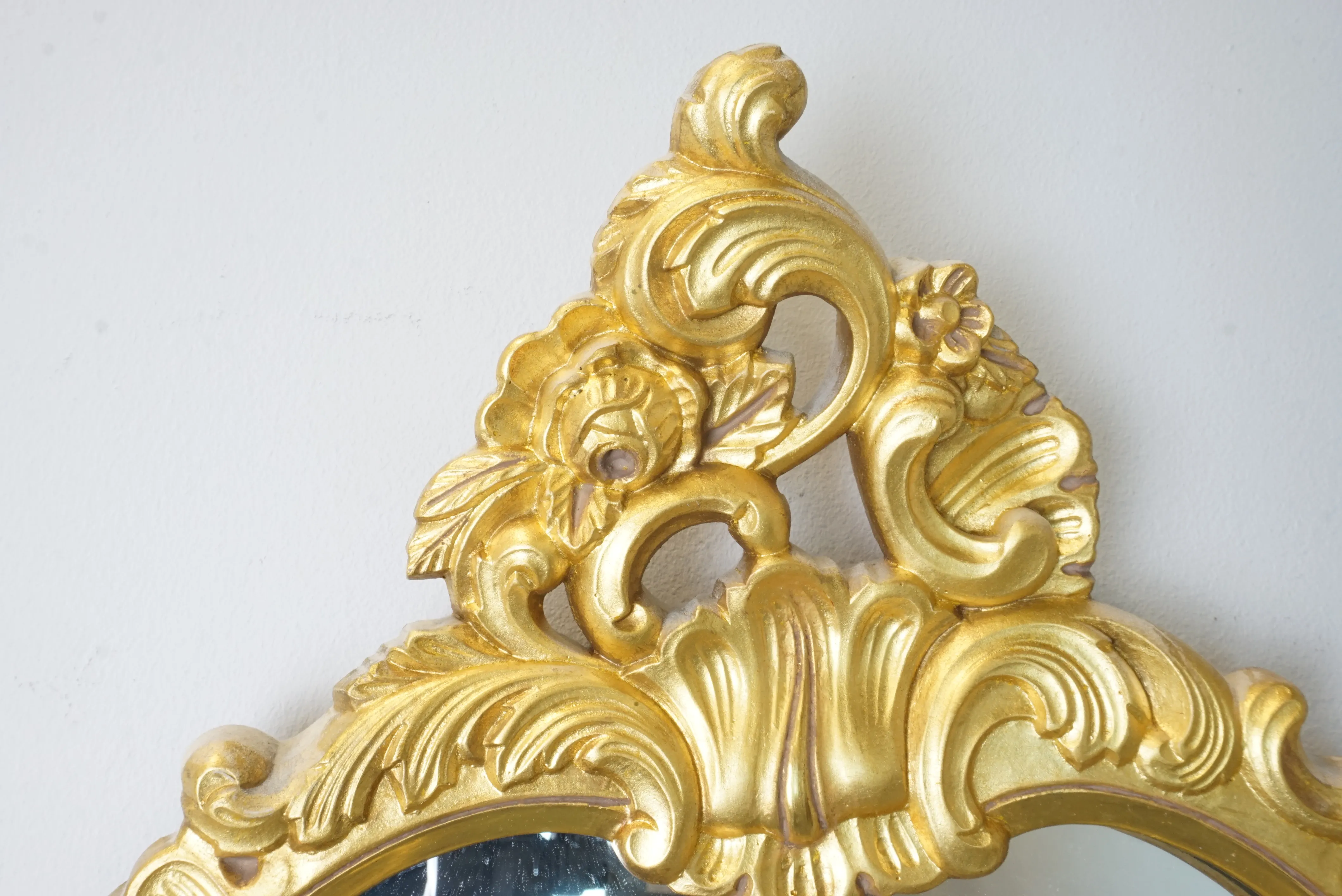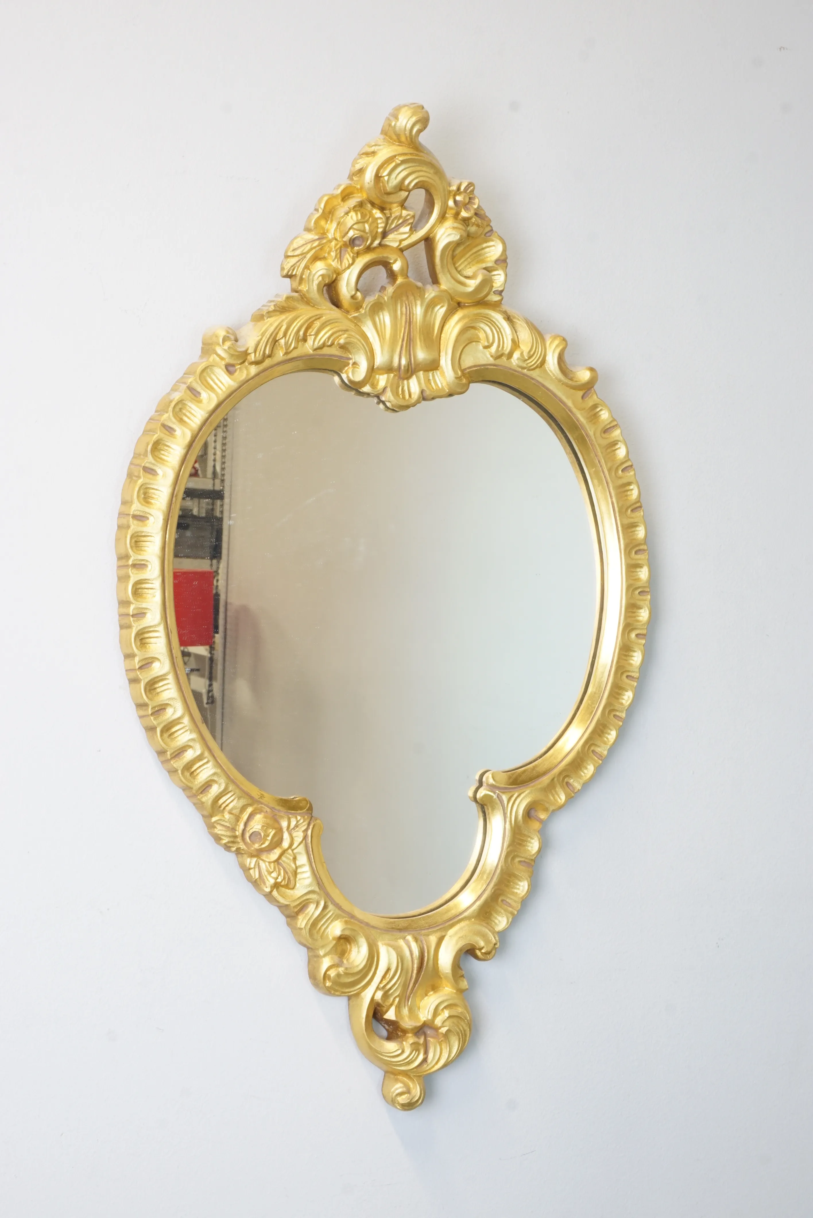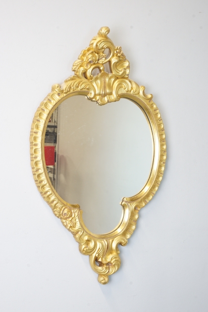 Förgylld väggspegel i rokokostil. Höjd: 82 cm Bredd: 48 cm