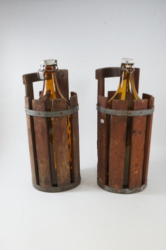 150. Flaskor i träkagge