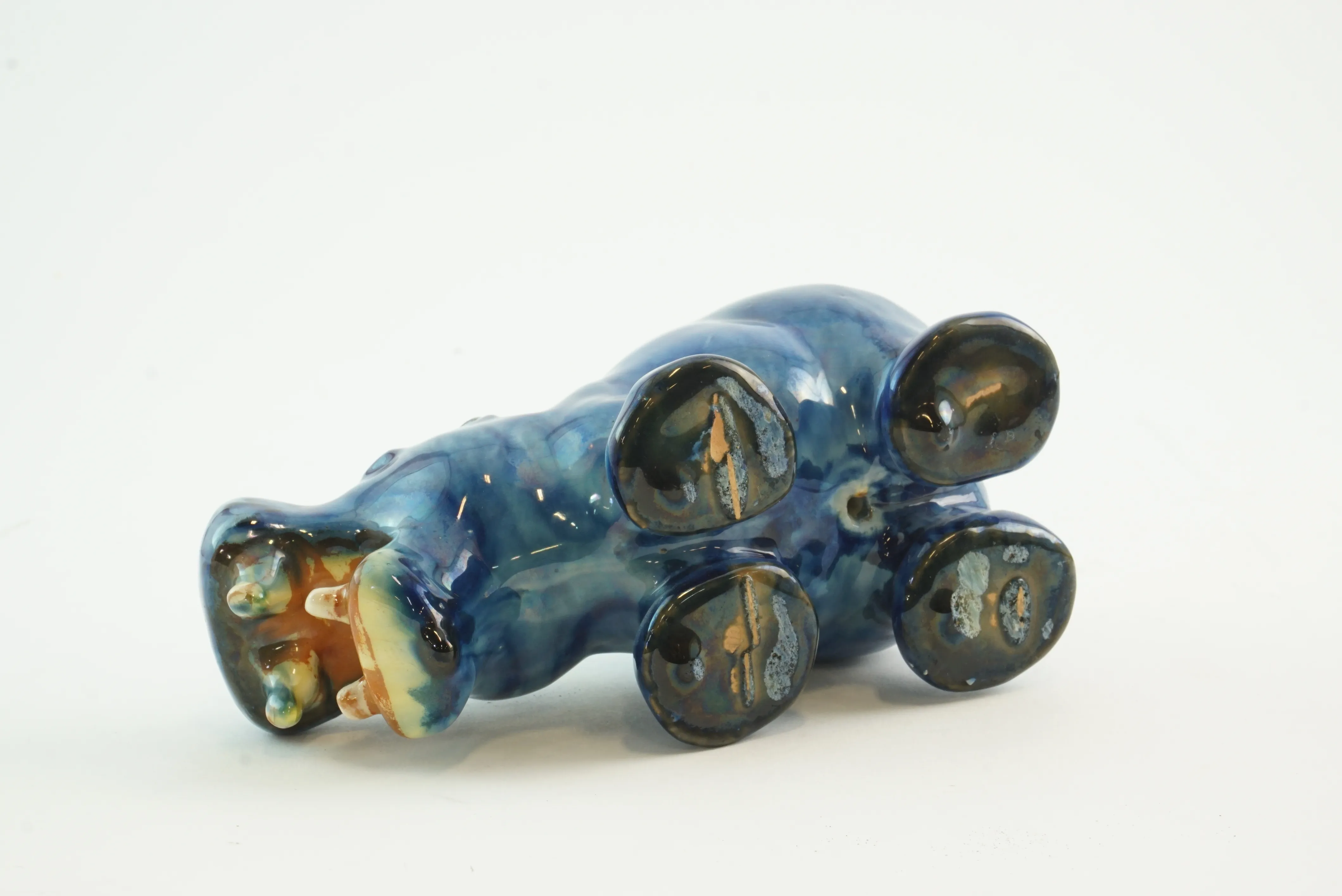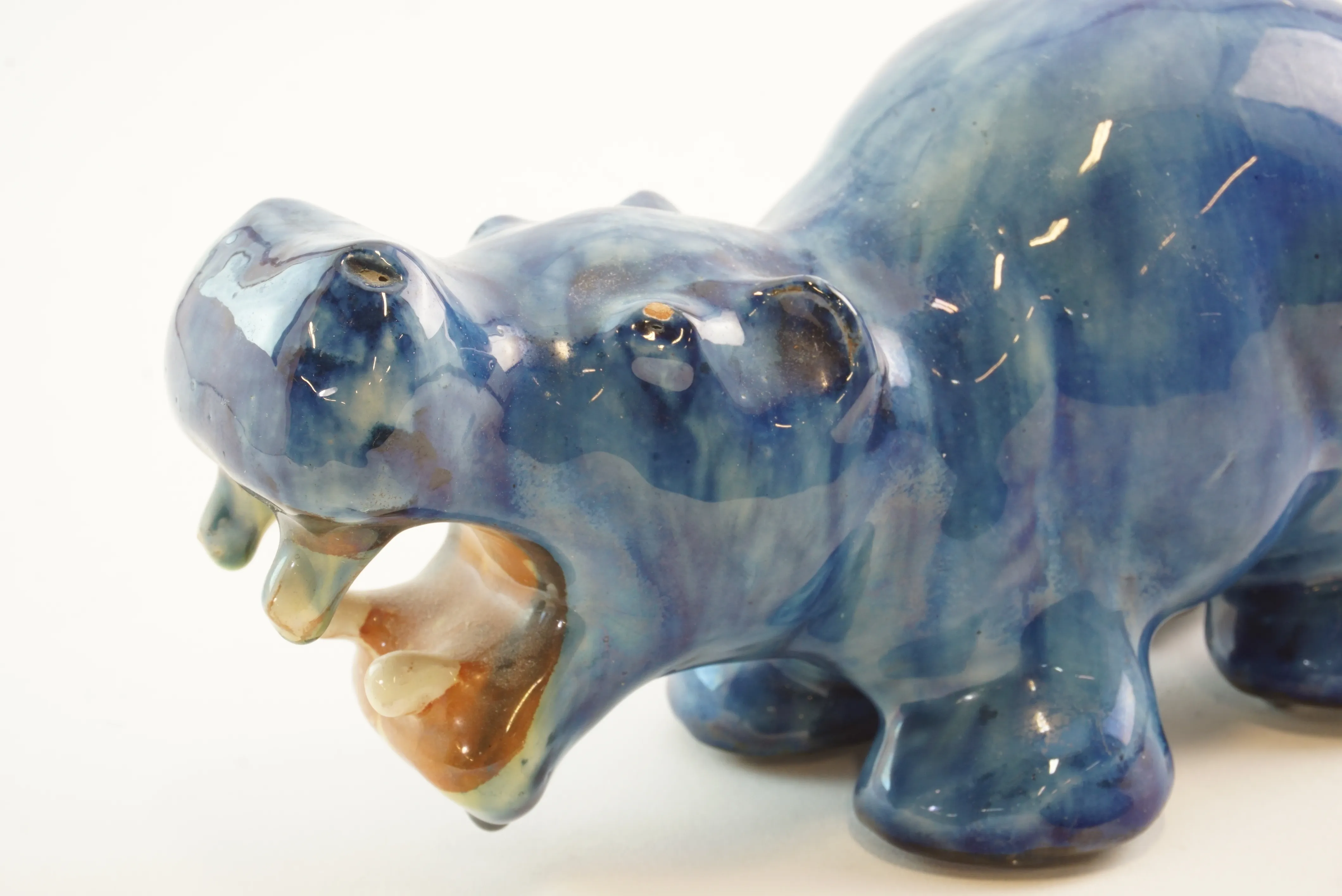 Flodhäst i glaserad keramik. Litet nagg finns. Höjd: 9 cm