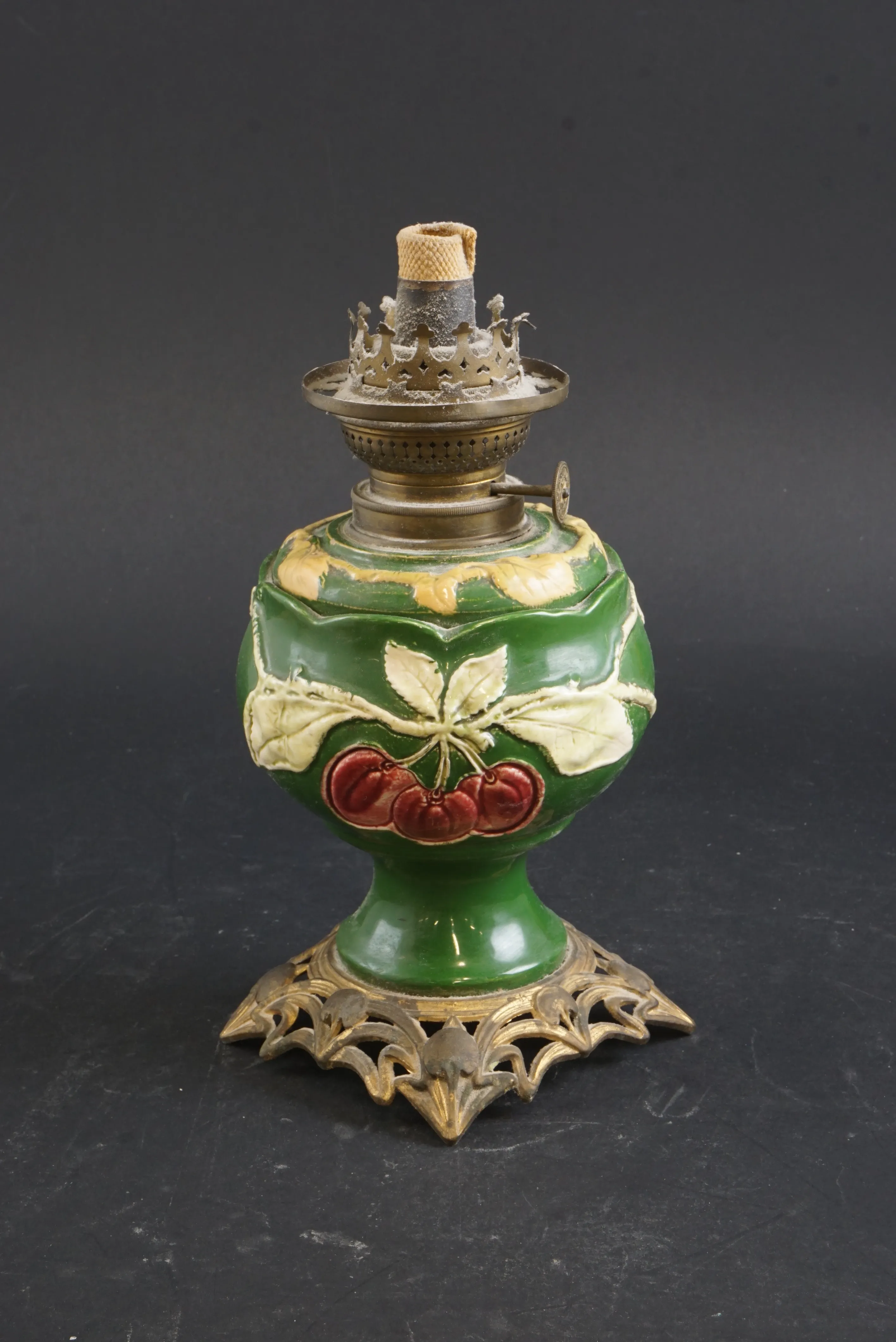 Fotogenlampa, majolika saknar kupa