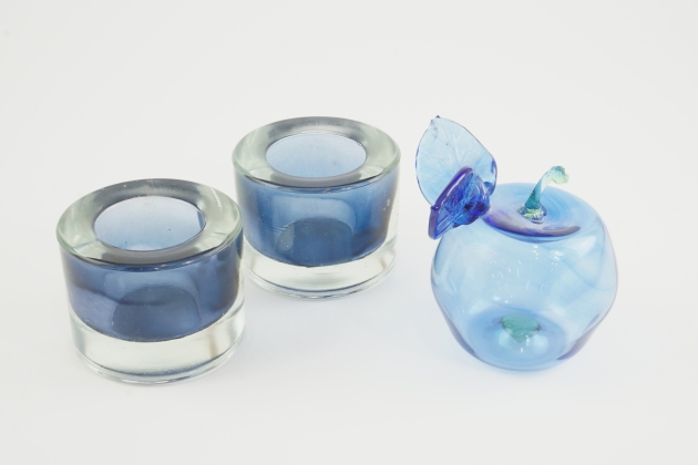 Glasäpple av Ragnar Klenell samt 2 ljuslyktor