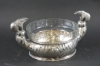 12200. Graverad skål, nysilver/glas