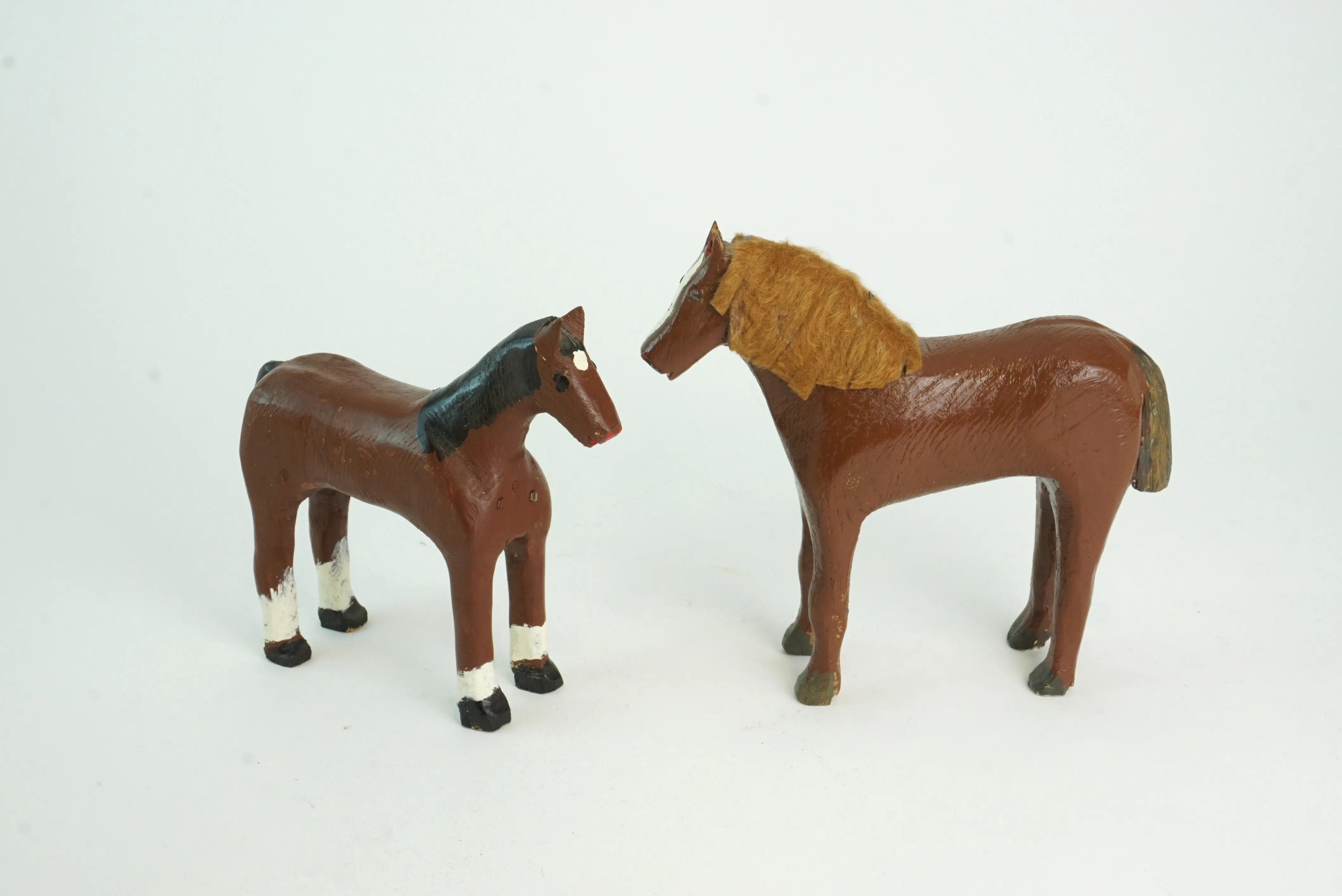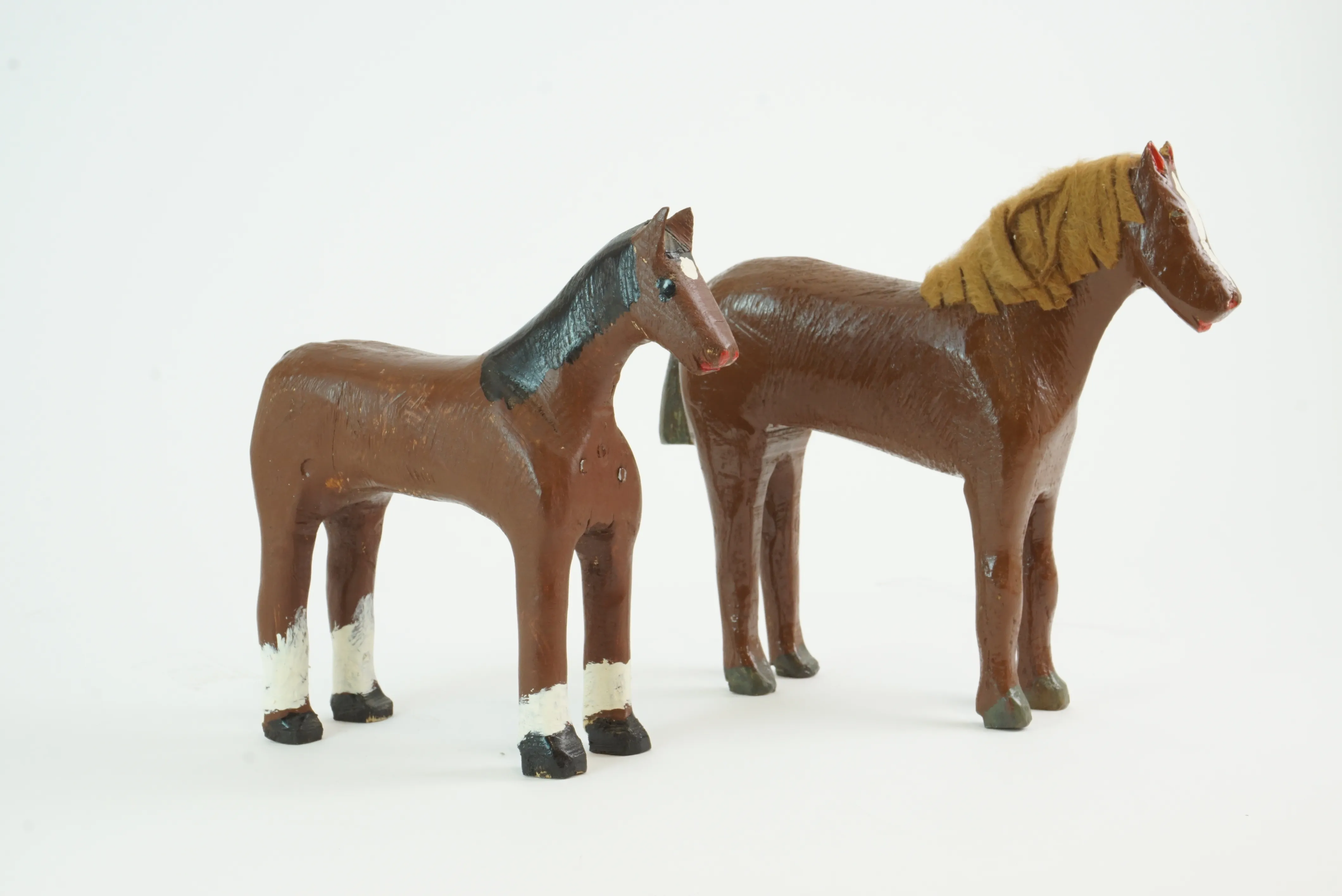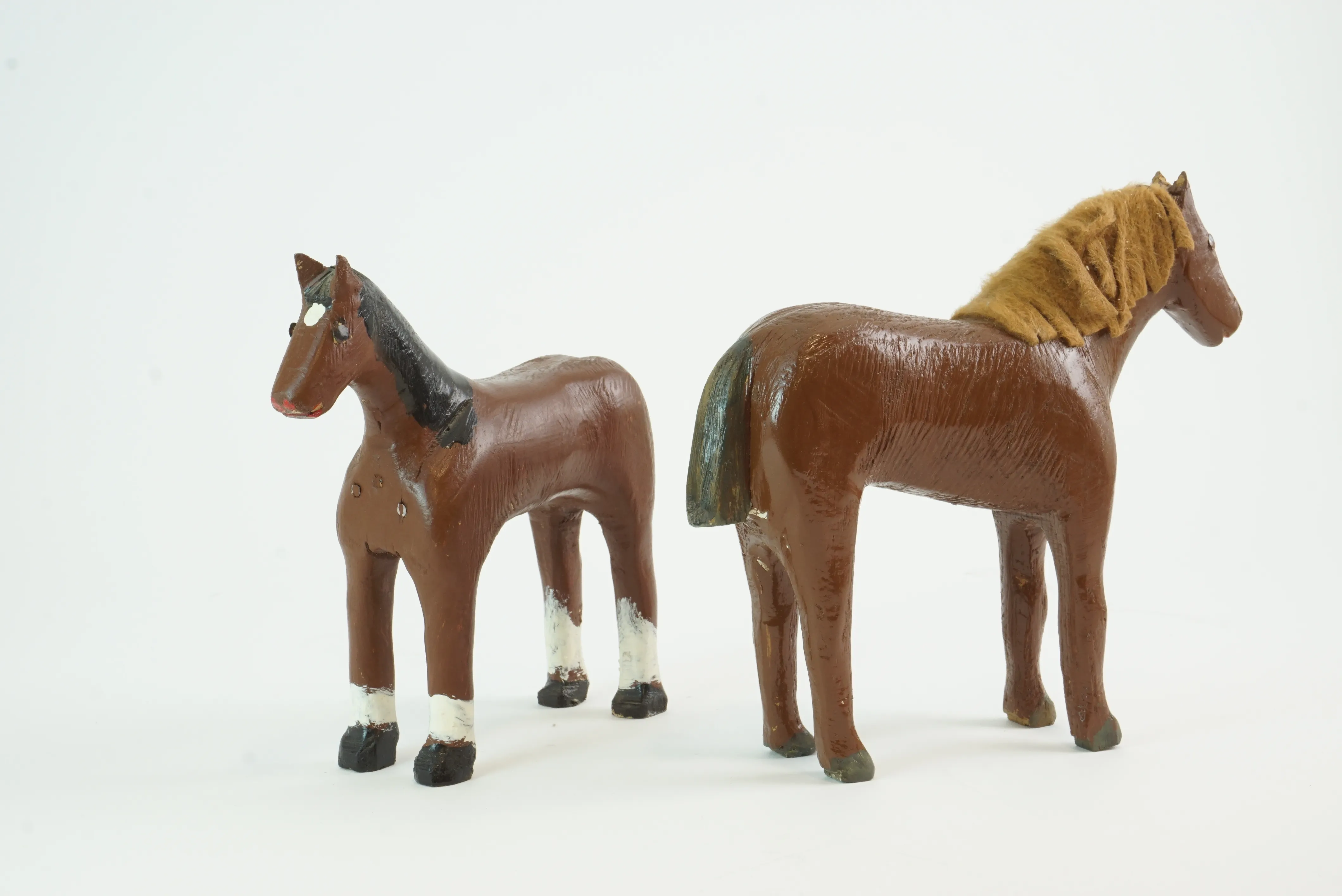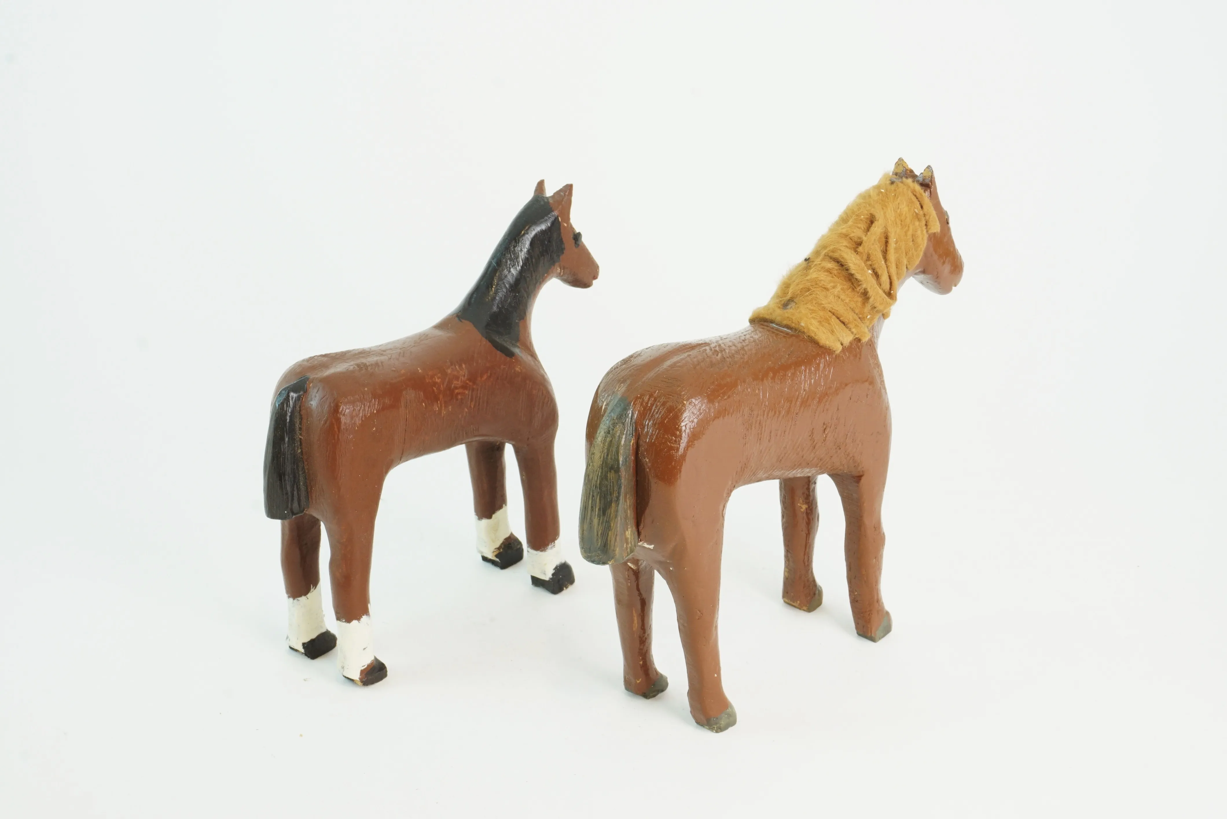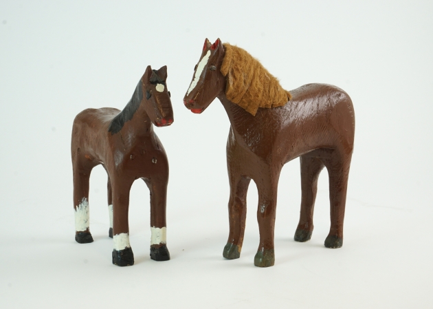 9. Hästar, trä, bemålade, 2 st