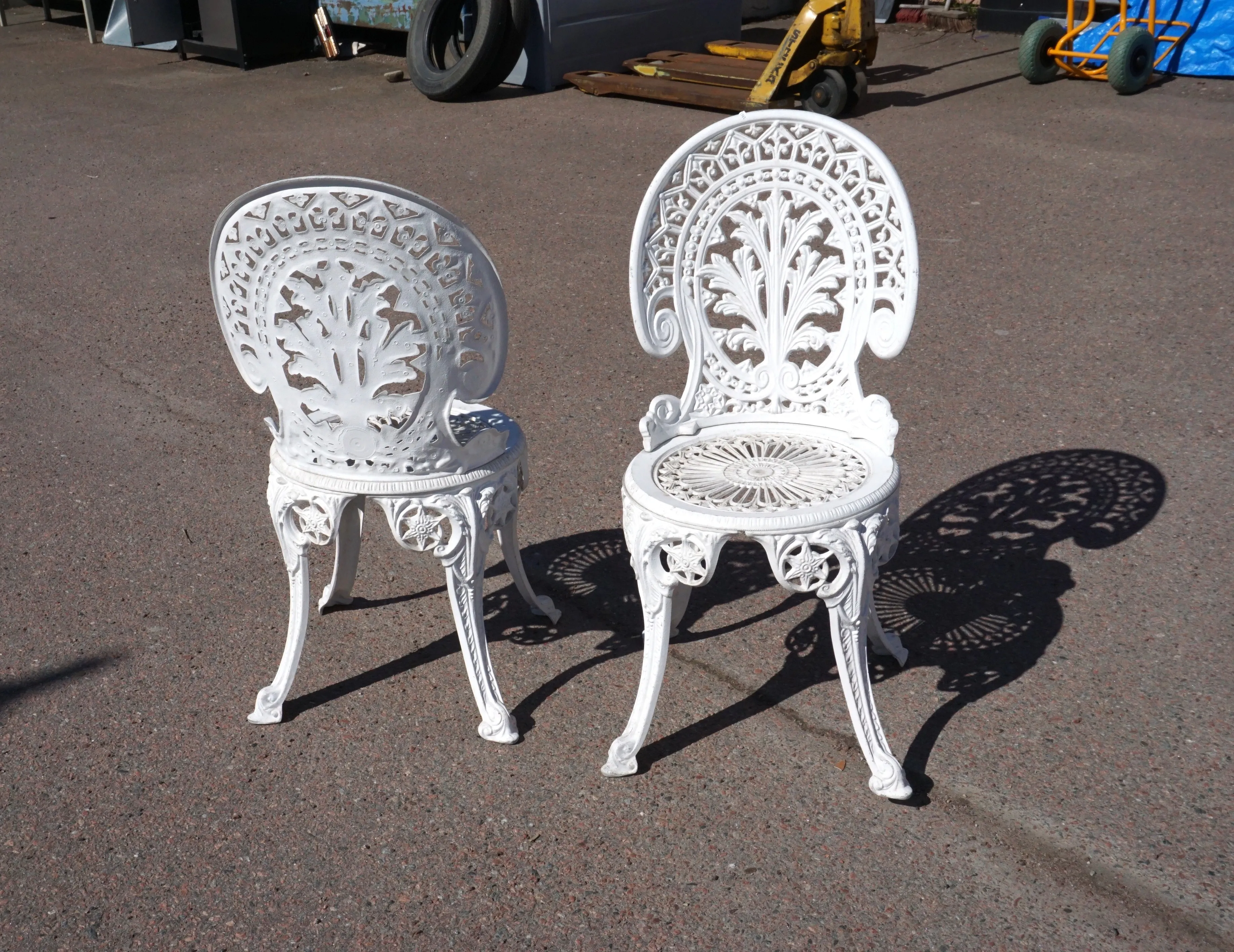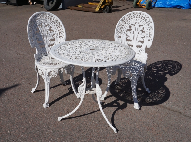 18885. Herrgårds Möbler i Aluminium. Bord och 2 Stolar.