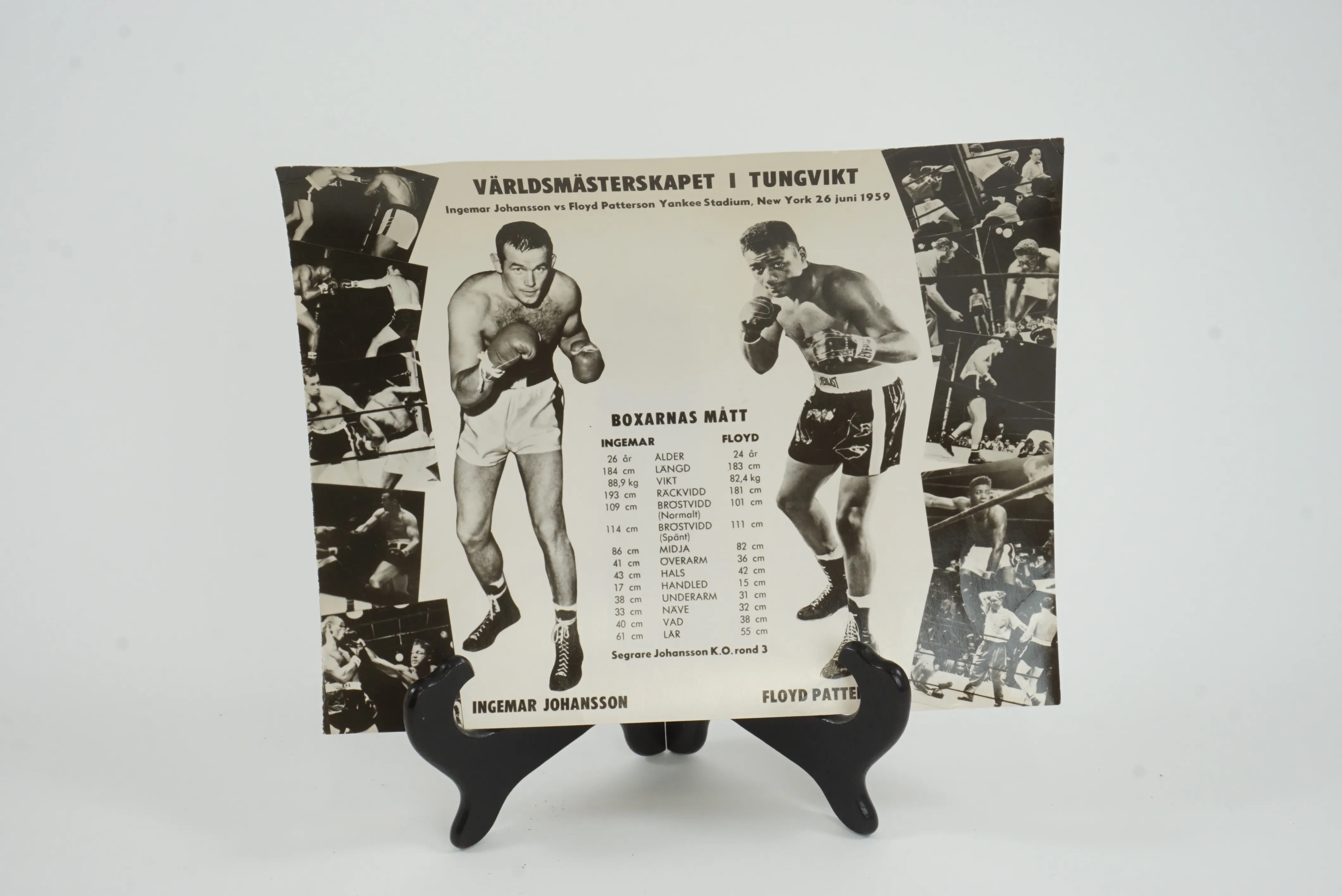 Original promotion blad inför Världsmästerskapsmötet i Boxning mellan Ingemar Johansson och Floyd Patterson på Yankee Stadium i New York 1959. Mäter 28 x 22 cm på styvt fotopapper