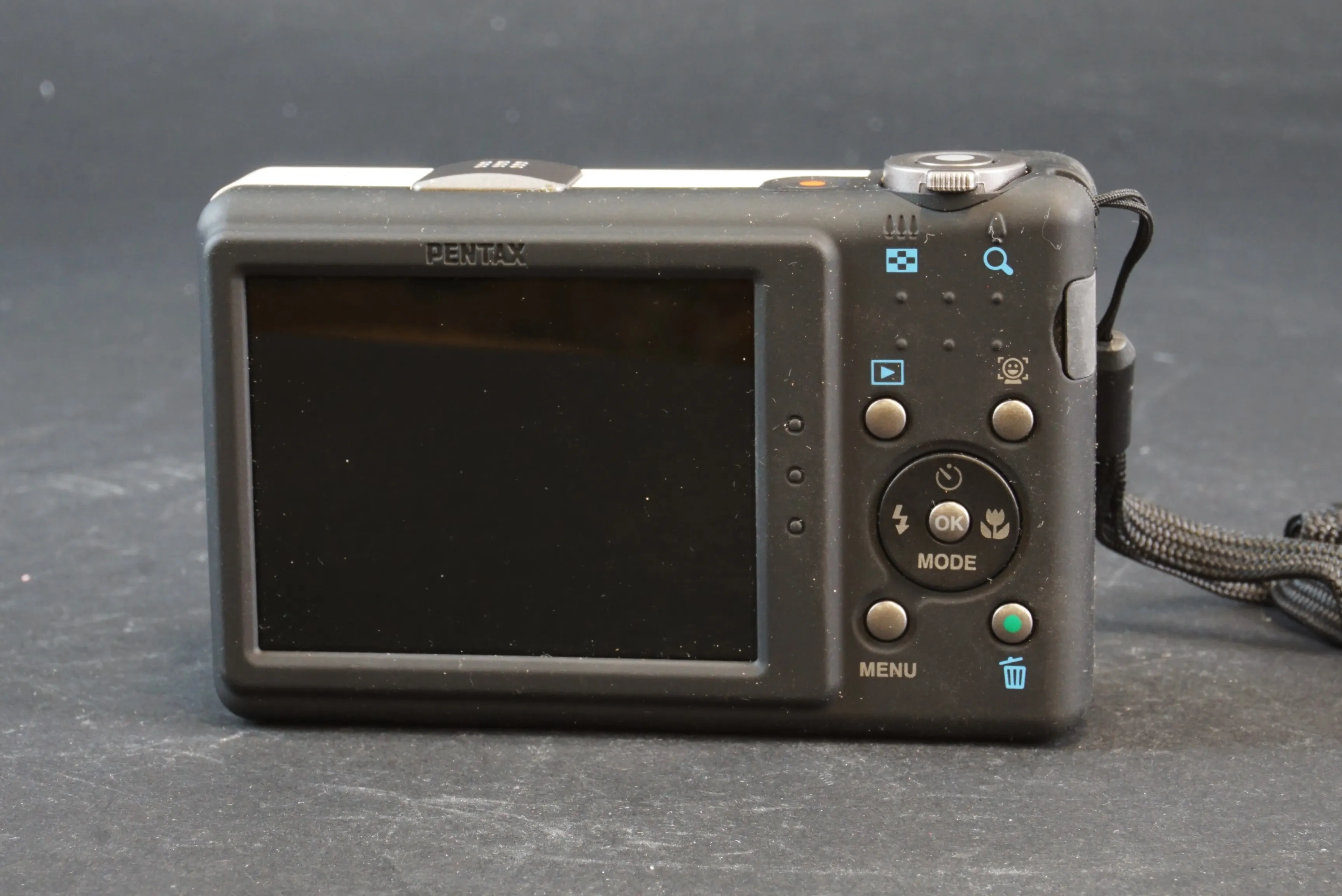 28. Kamera med väska, Pentax Optio RZ10.