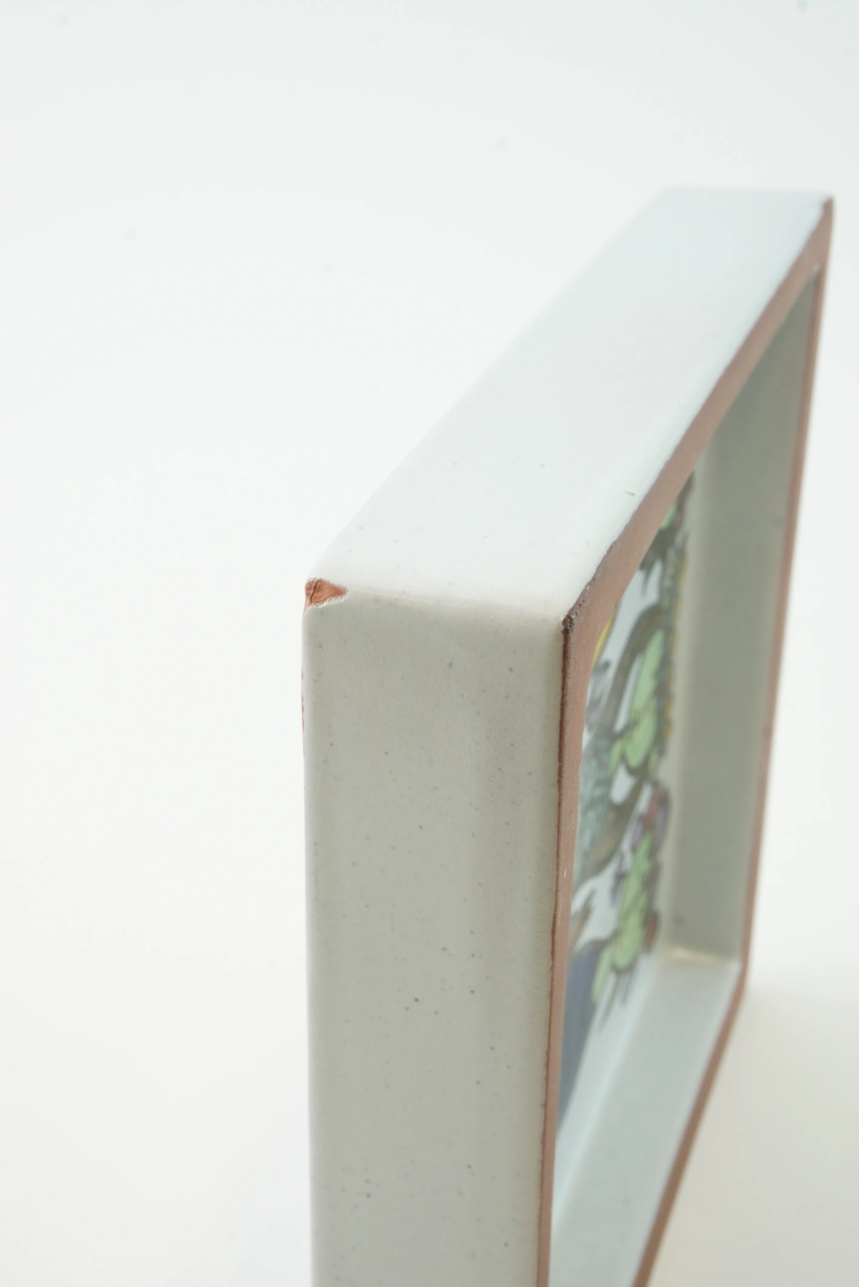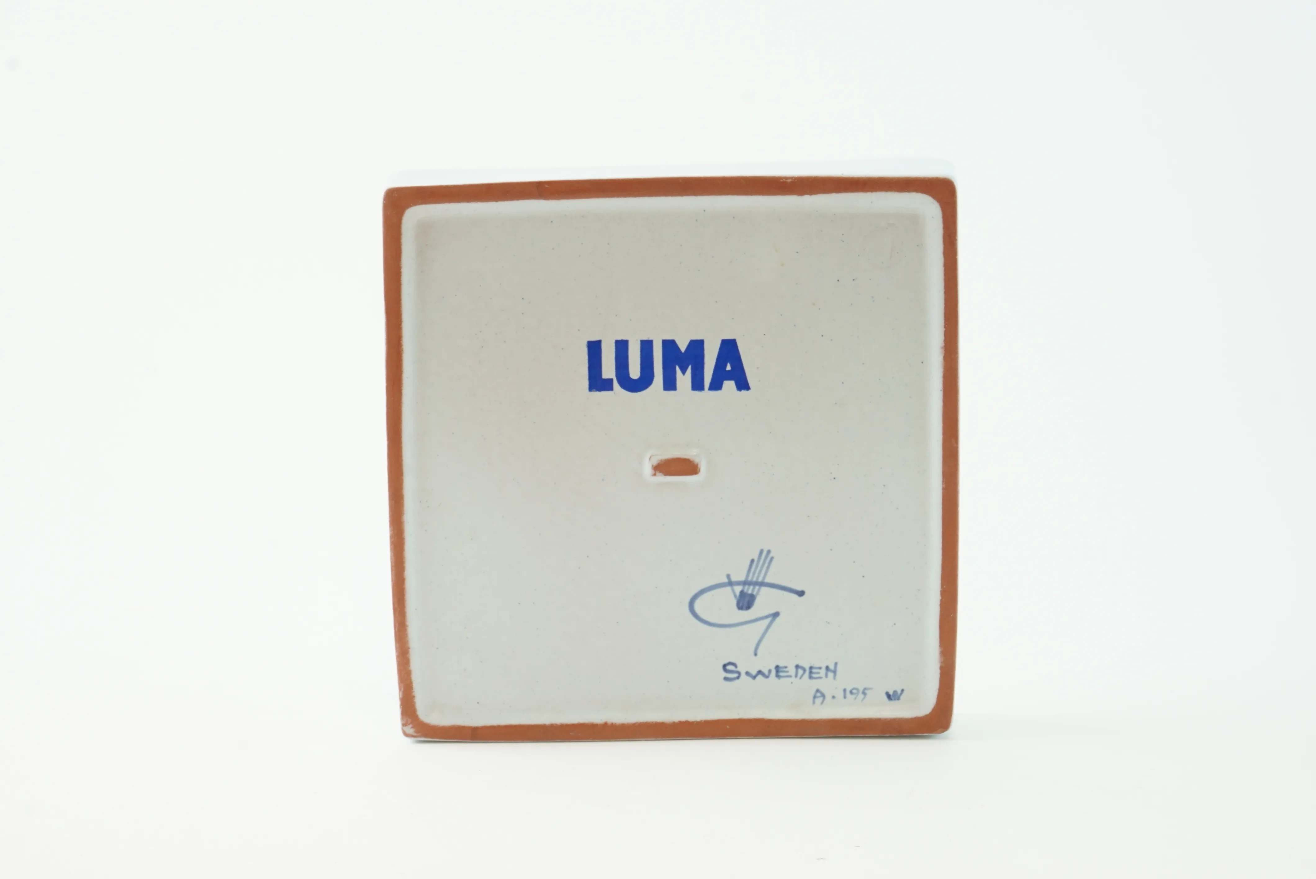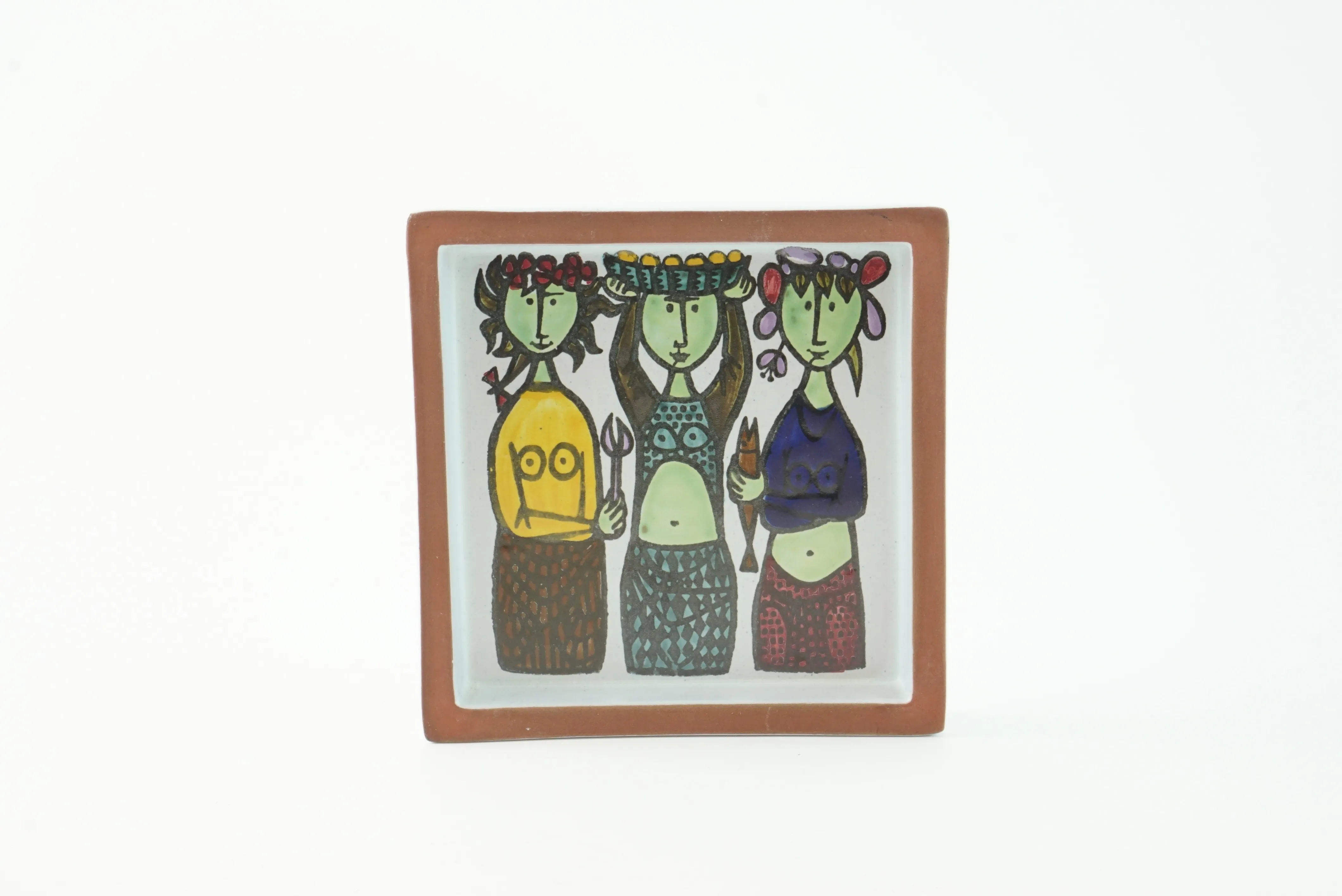 Keramiktavla Karneval, Stig Lindberg. Märkt LUMA A-195 och studiohanden. Litet nagg. 15,5cm x 15,5cm.