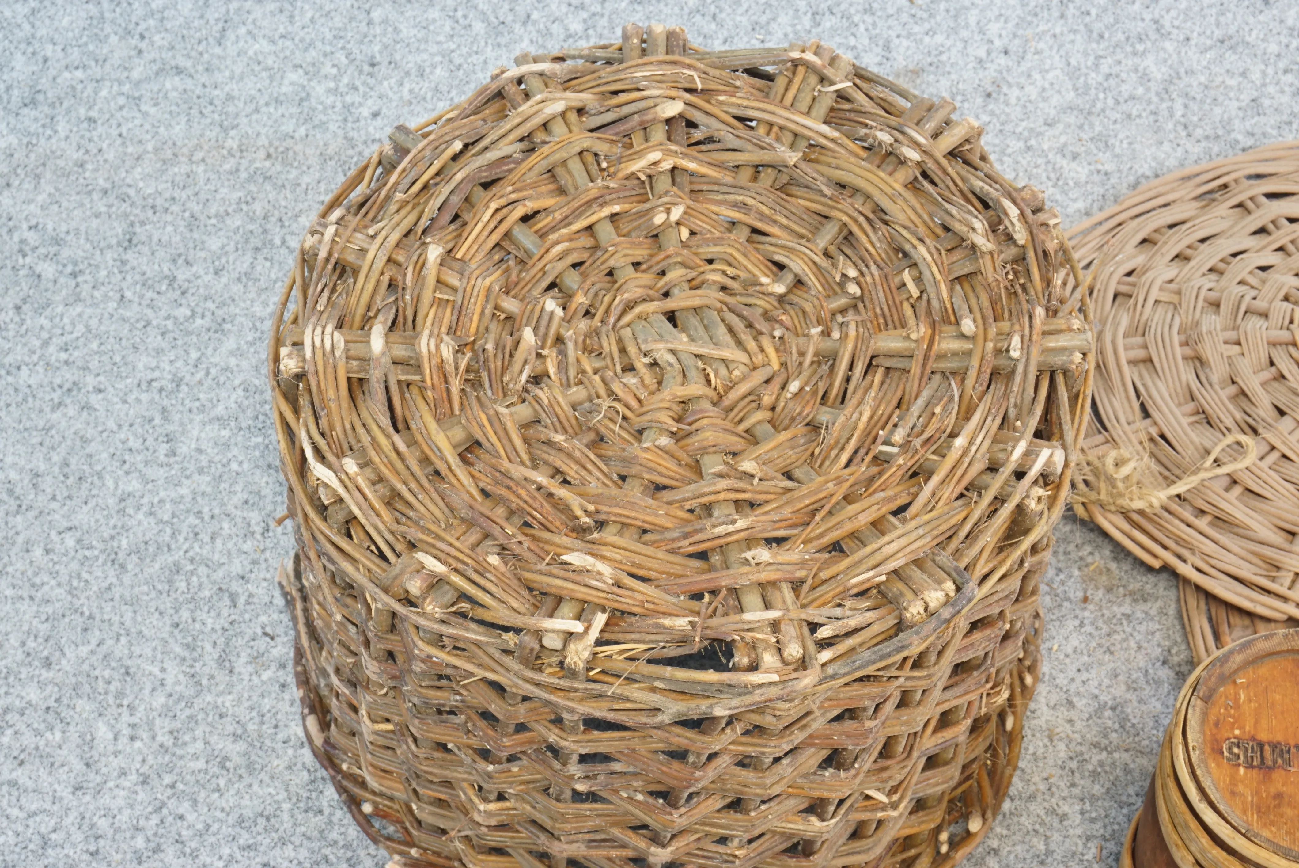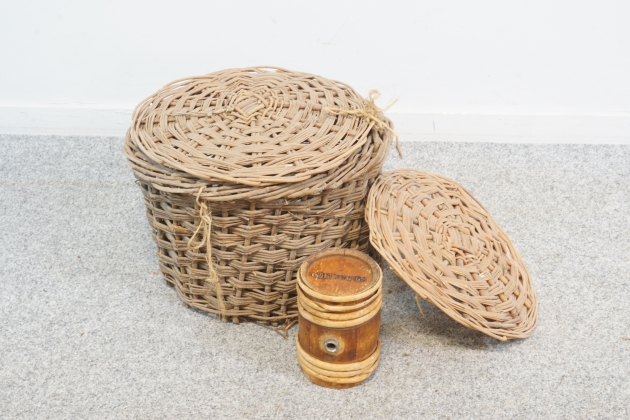 Pilkorg, diameter ca 45 cm, höjd: 28 cm - Skadad i botten. Kagge märkt "PÄST.MMS" Längd: 19 cm