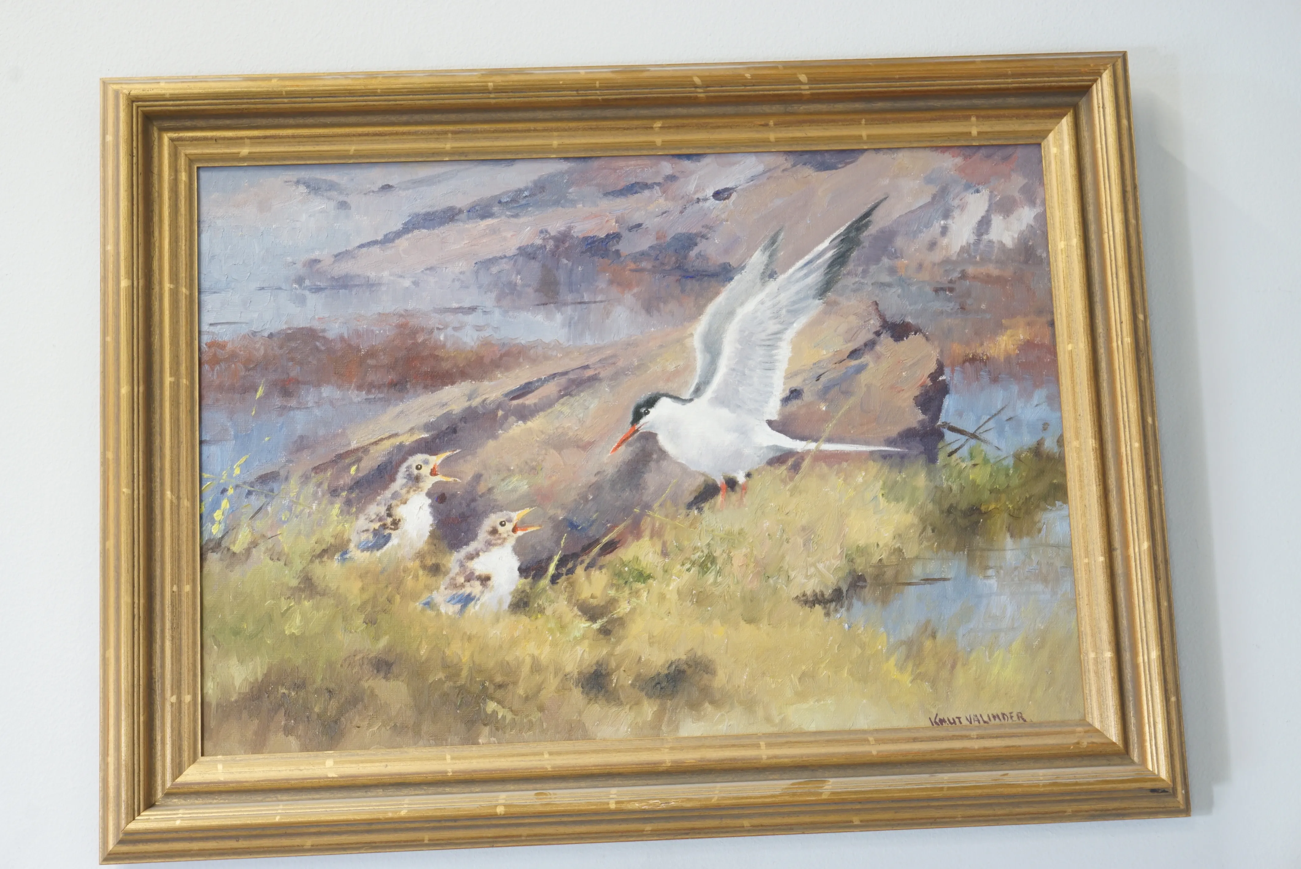 15071. Olja på duk,"Sjöfåglar" Knut Valinder, signerad