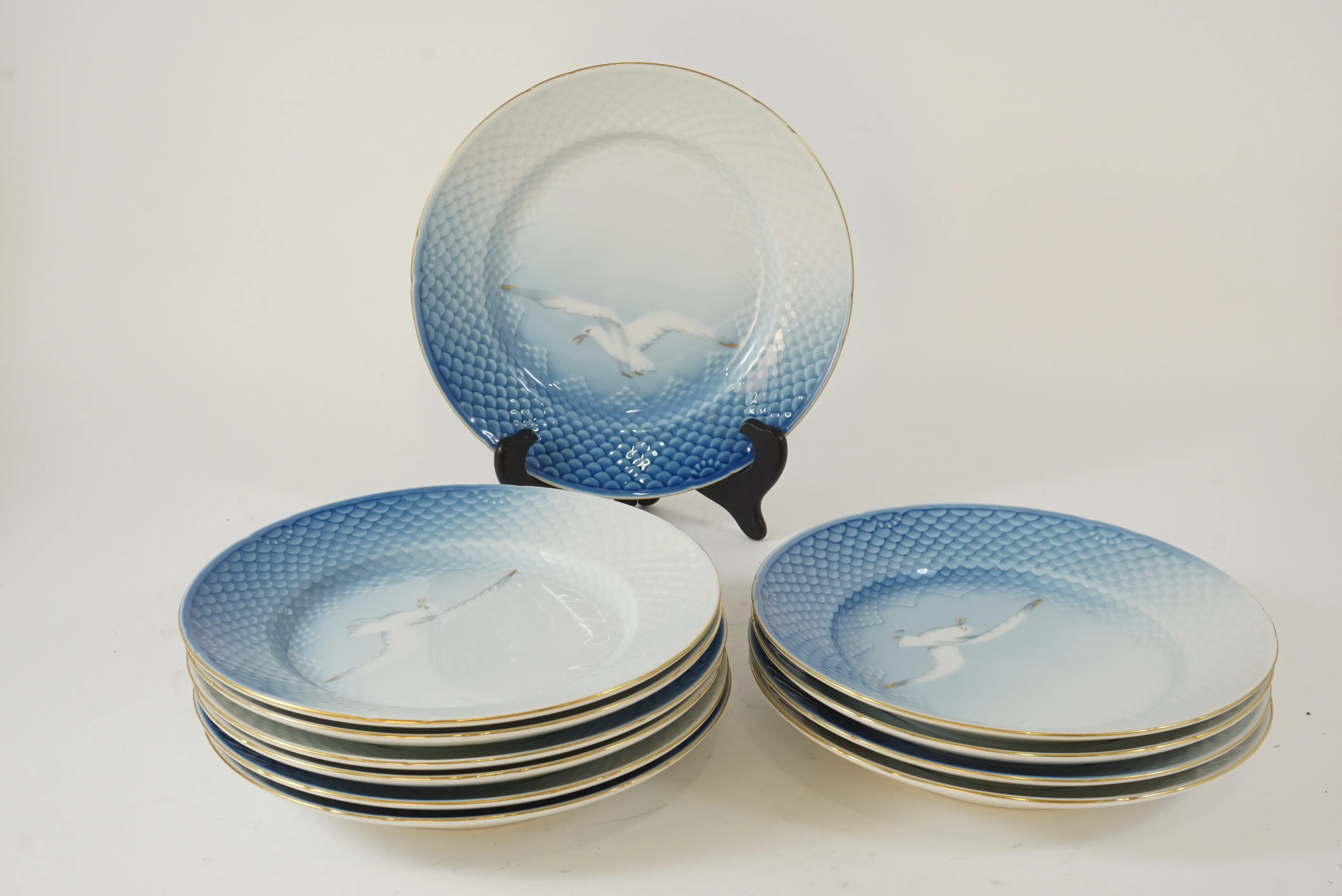 15022. Porslin assietter "Blå måsen" 11 st