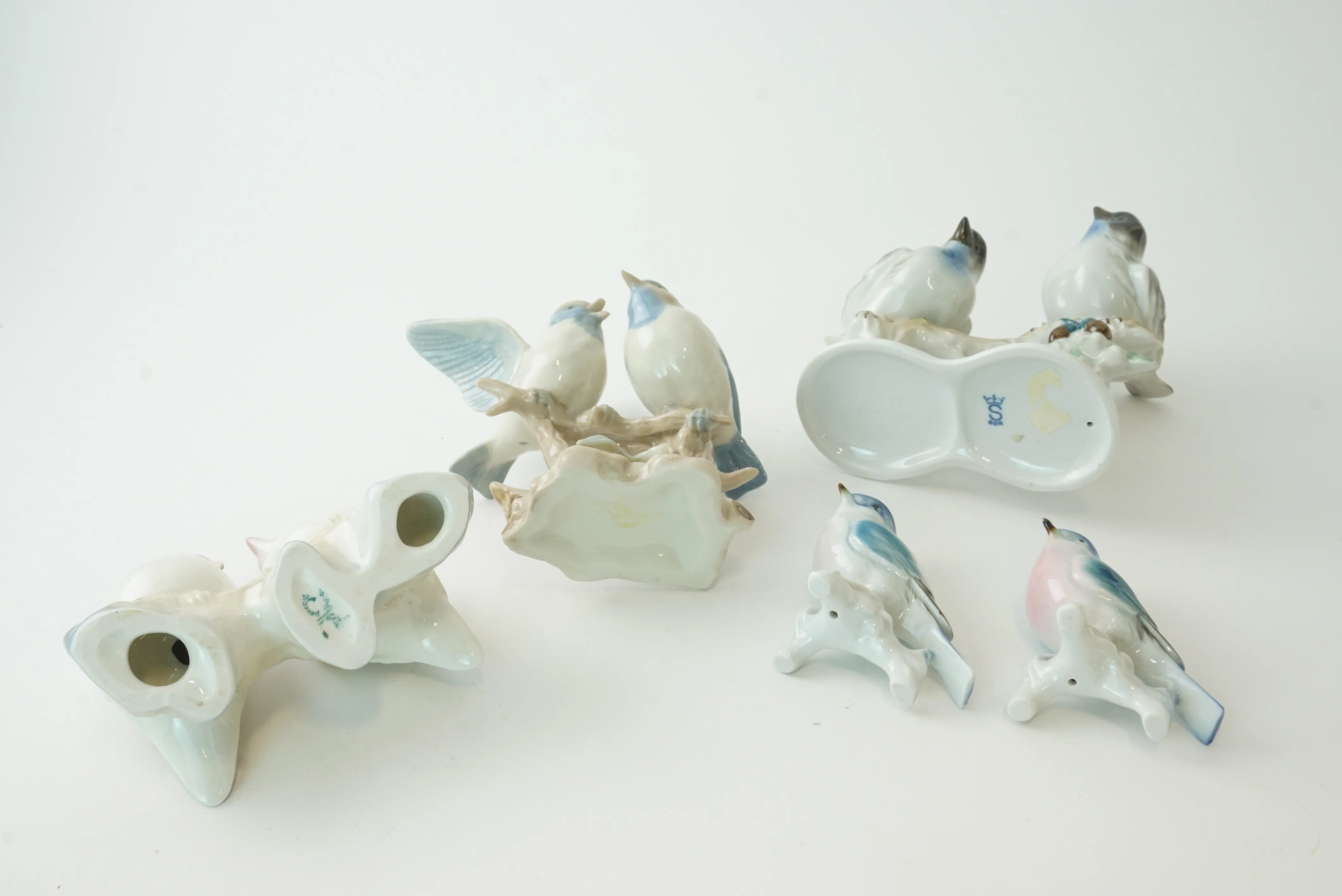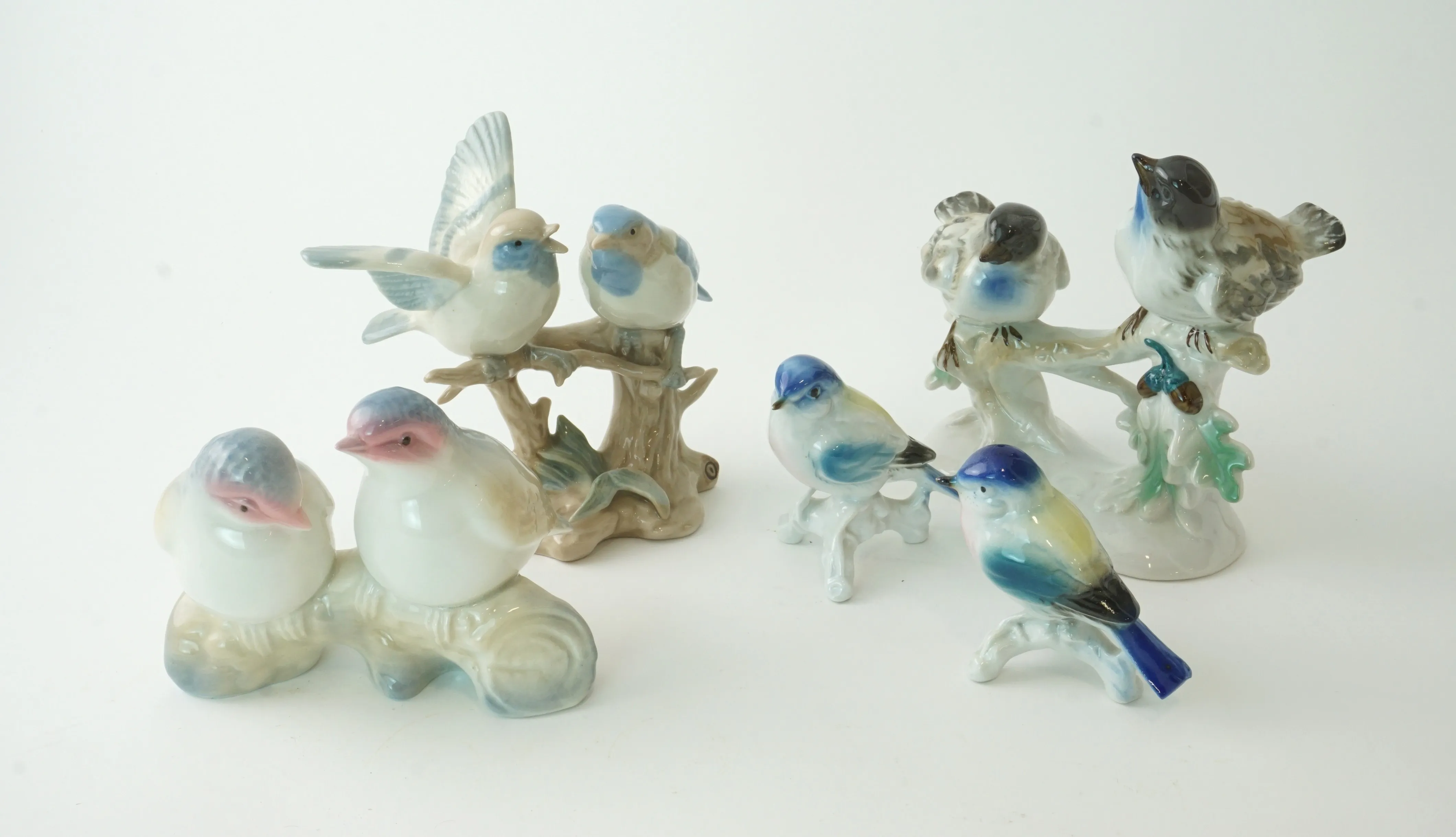 Figuriner i porslin i form av fåglar, 5 st.