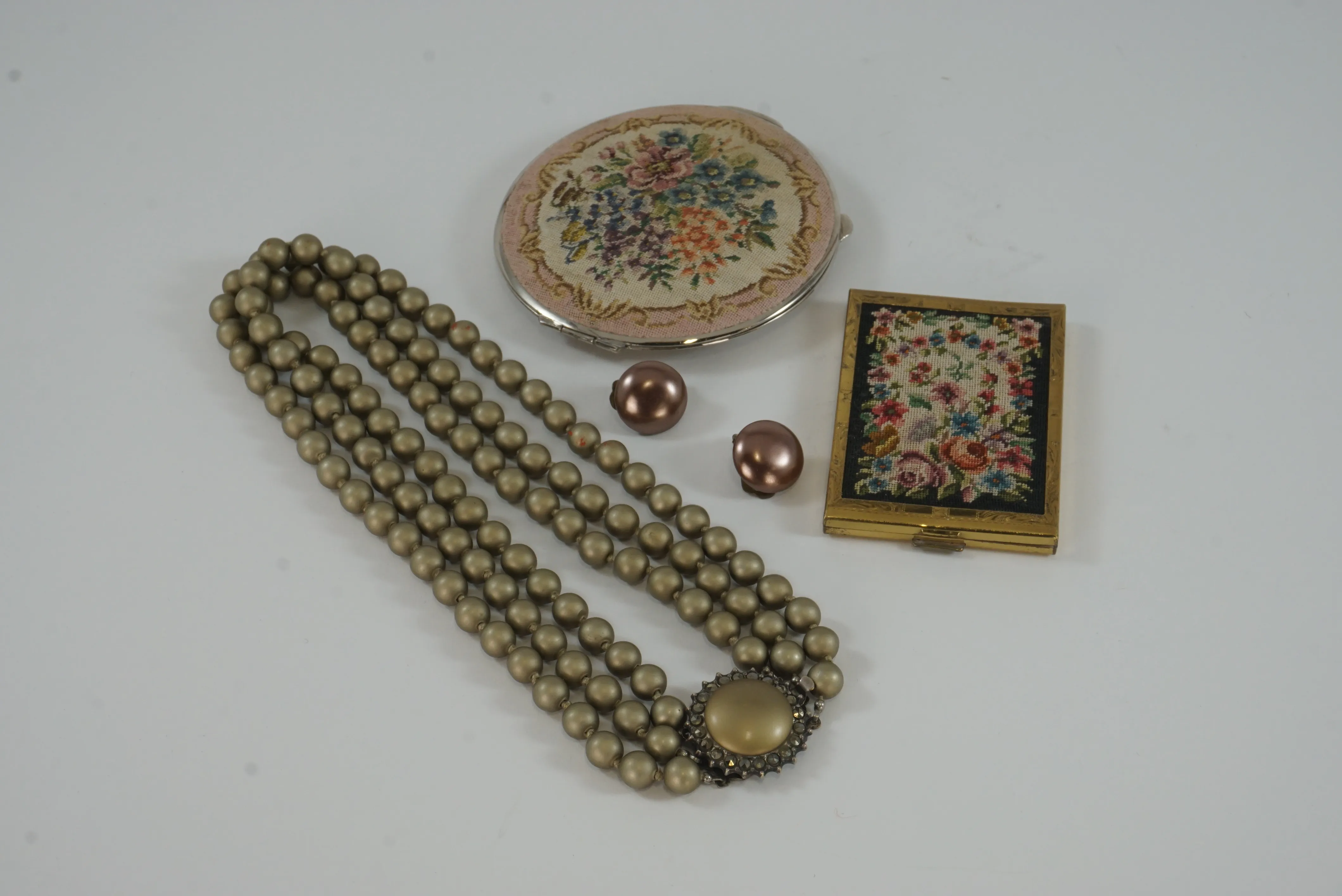 Två puderdosor + smycken.