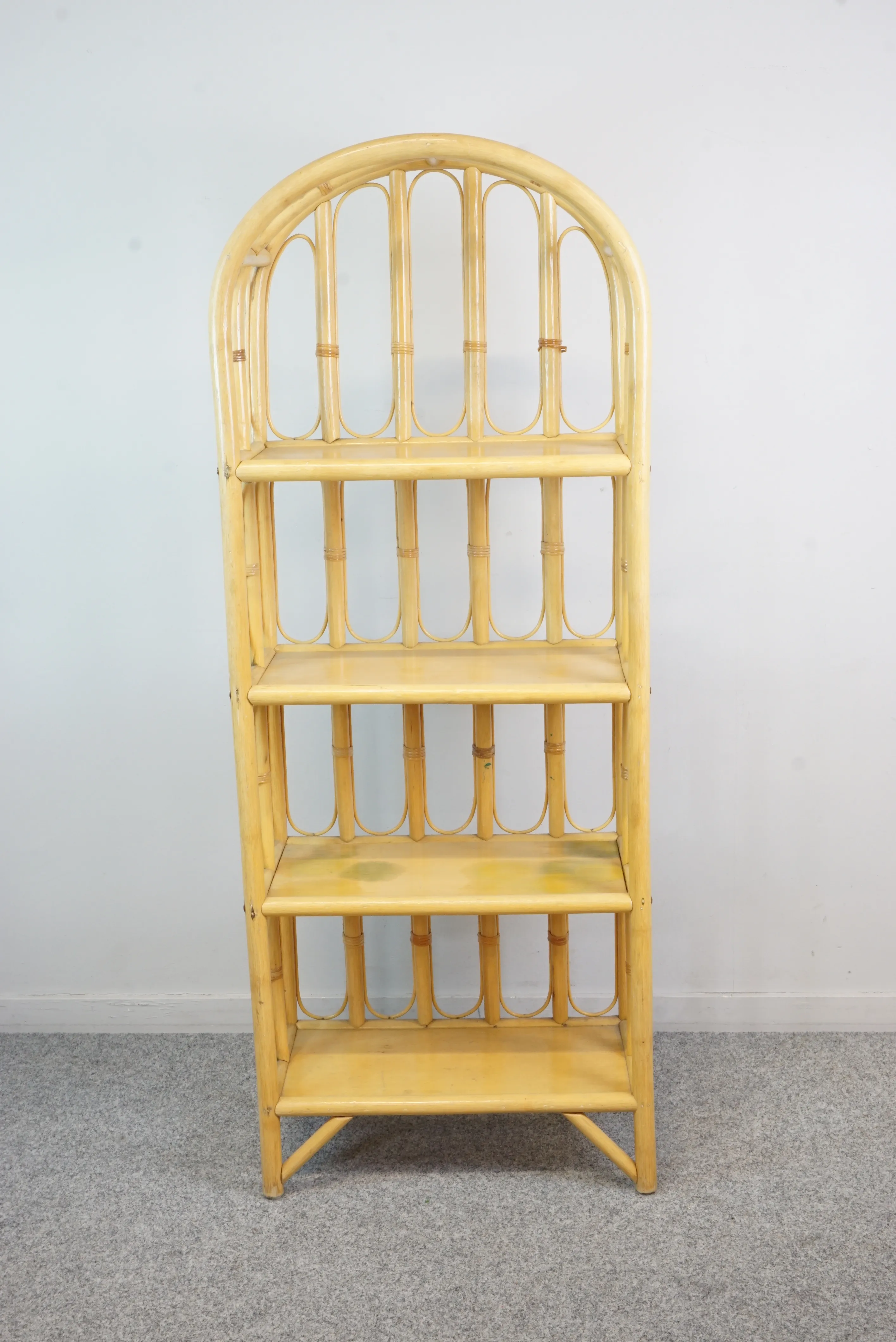 Hylla i rotting med fyra hyllplan. Fläckar förekommer. H: 158 cm B: 56 cm D: 30 cm