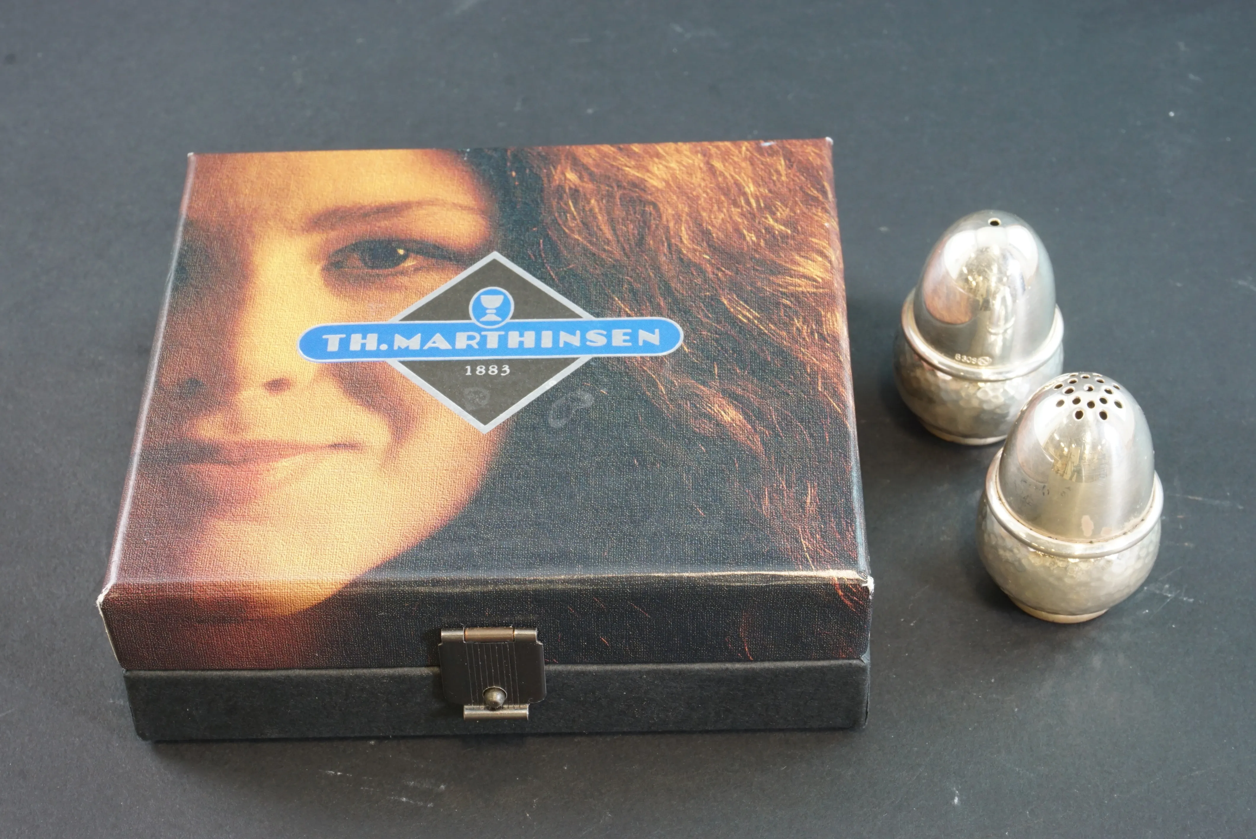 Salt och Peppar Kar i silver. TH.Marthinsen, Norge.