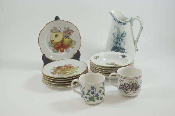 Samling porslin bla kanna Egersund Norge