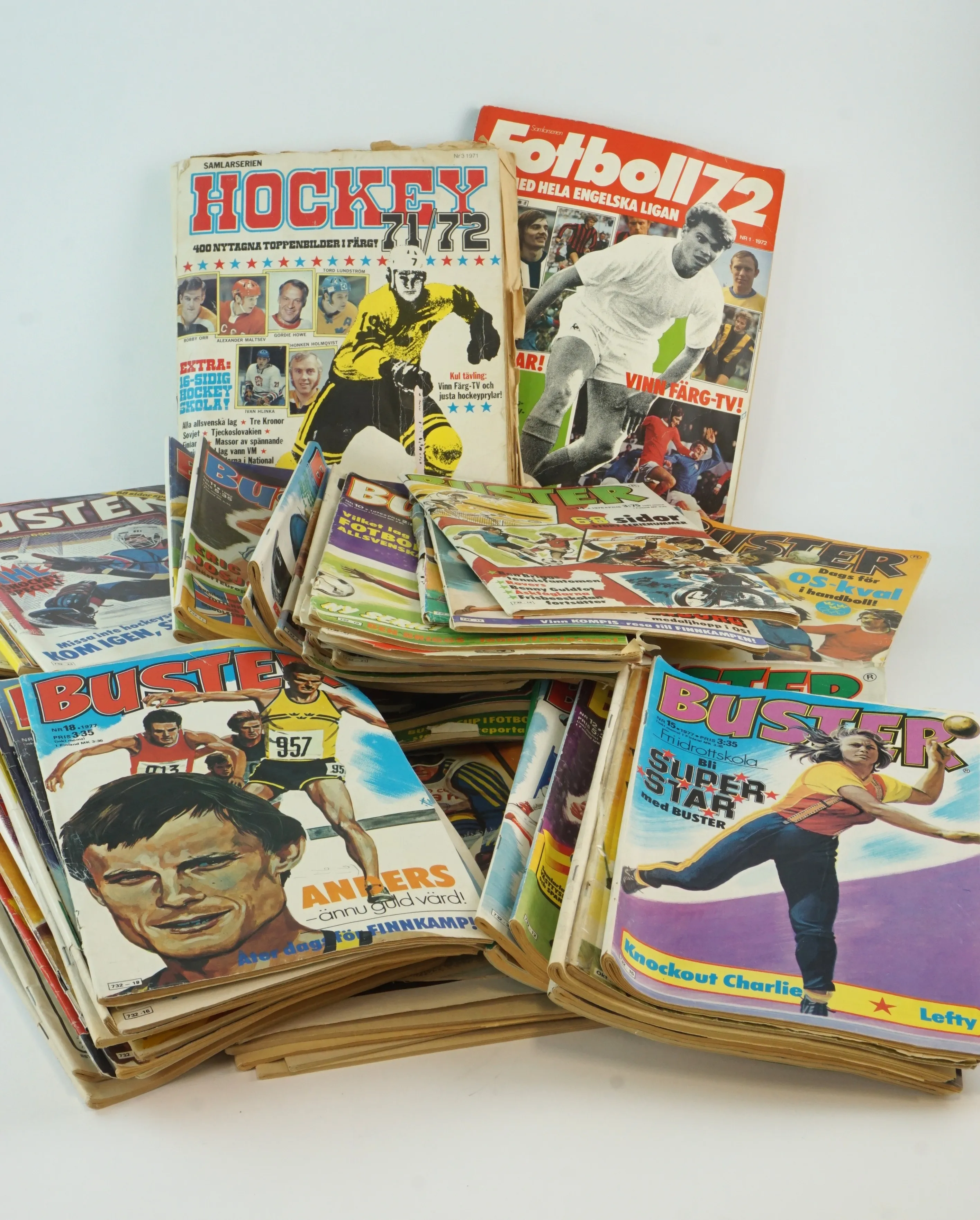Blandat skick. Hockey, fotbollsalbum, slitage, ej kompletta.