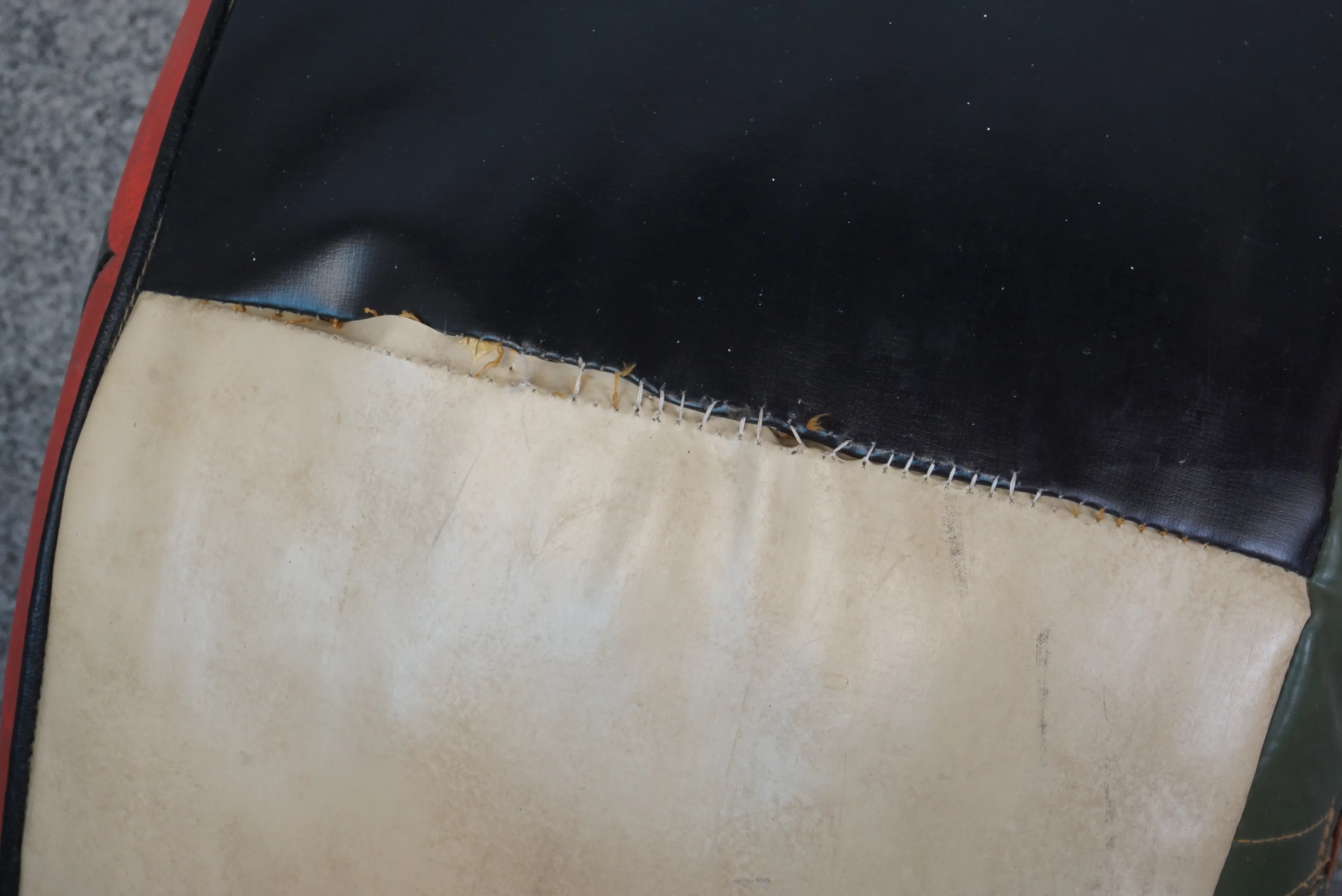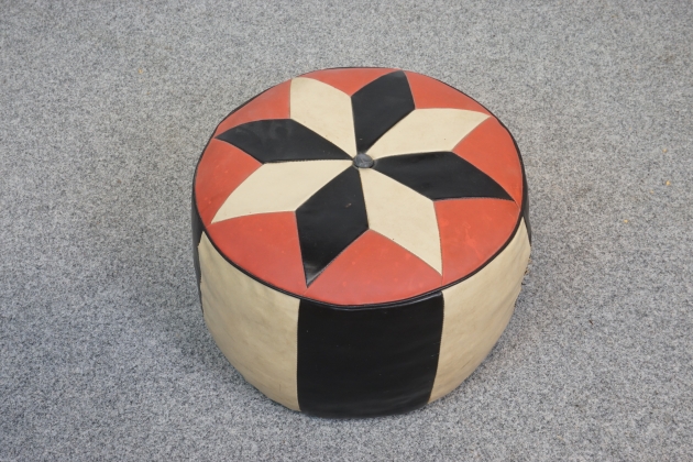 Sittpuff i galon. Sömmar har släppt. H:10 cm Diameter: 17 cm