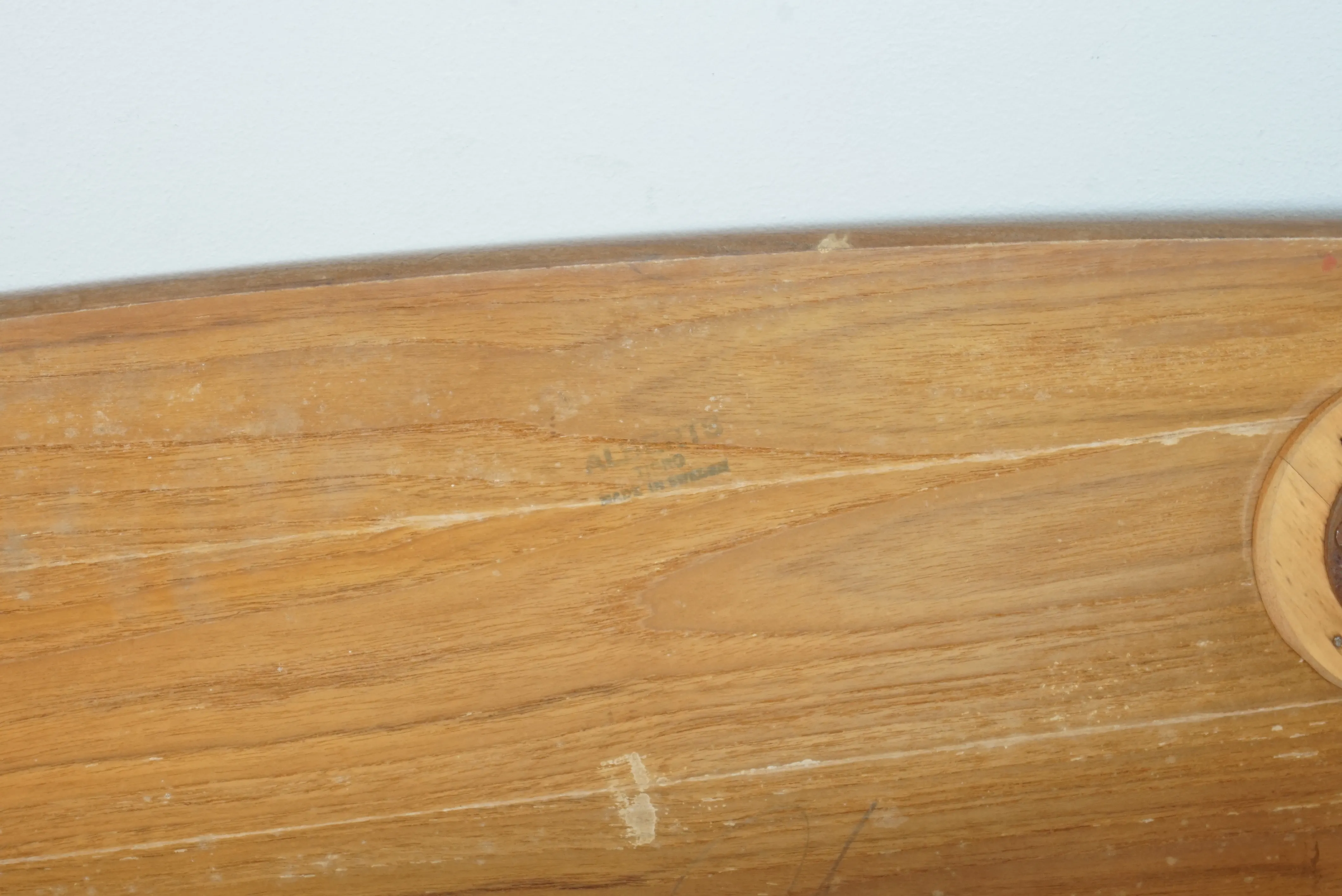 Alberts Tibro. Mått: ca. 57,5x121x54 cm. Rost på skruvar och metalldelar och ytslitage på skivan.