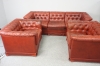 Slitage, sprickor, saknas knappar. Knappar medföljer. Soffa: Bredd 226cm djup: 86 höjd: 66cm Fåtöljer: Höjd 66 cm, djup: 86 cm, bredd 108cm