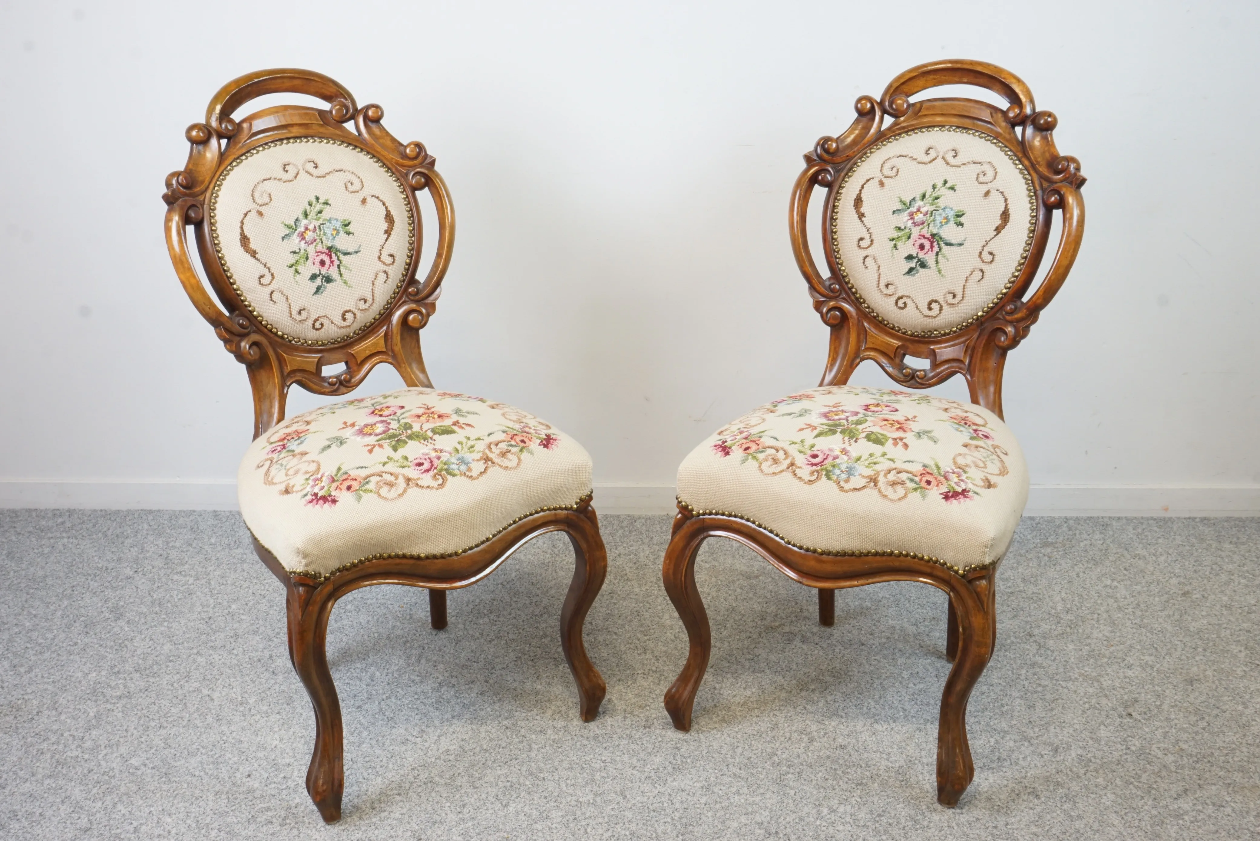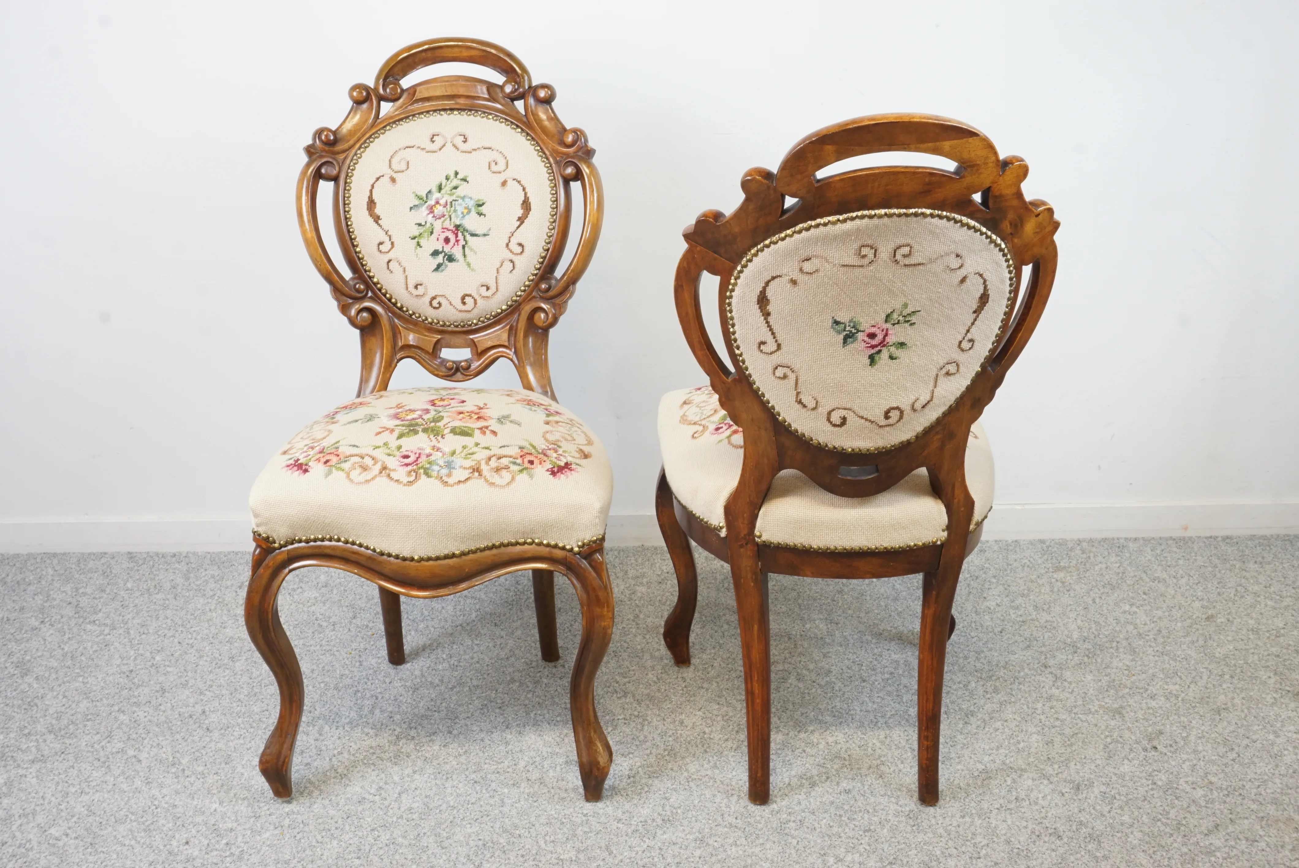 23. Stolar i rokokostil med broderad sits.
