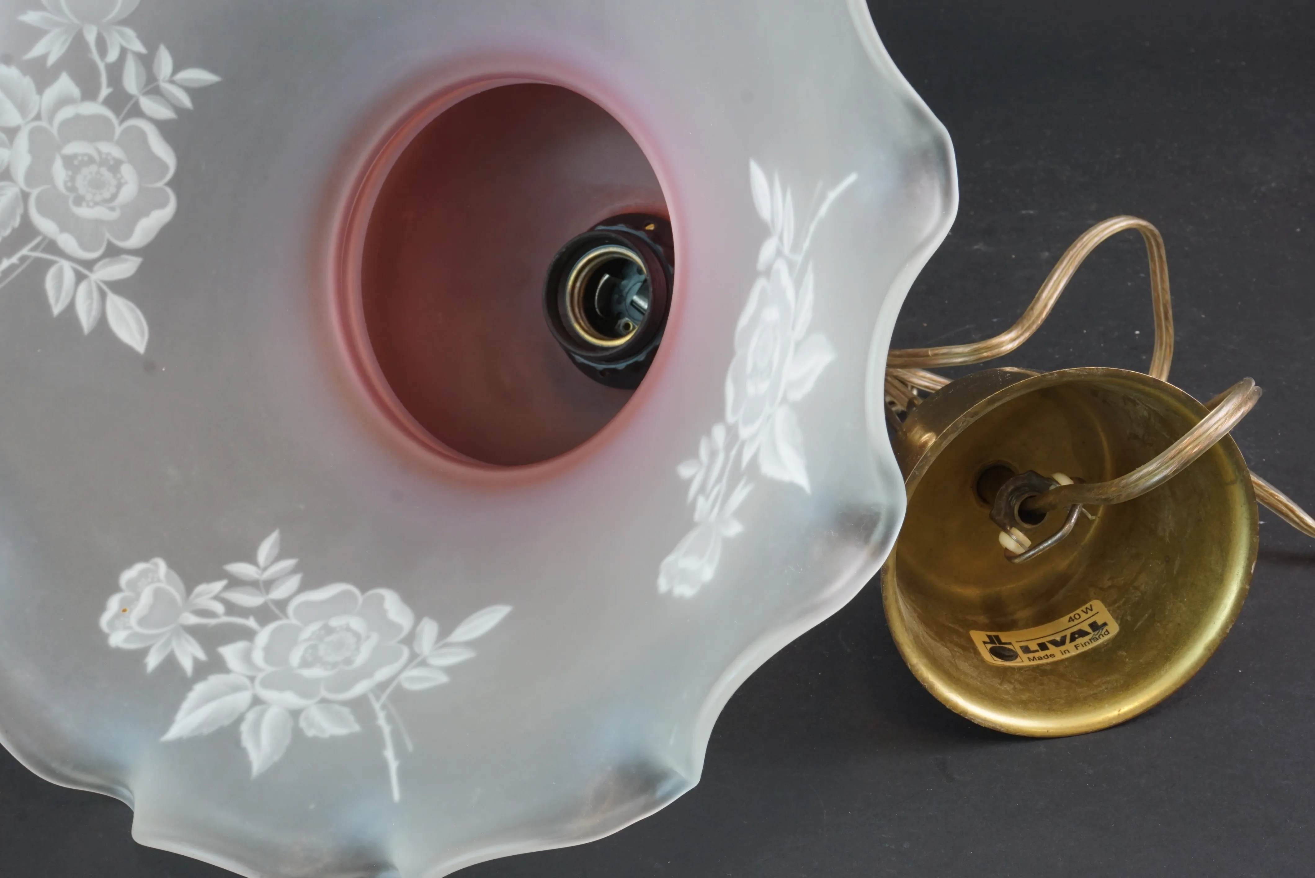 Taklampa mässing och glas, Lival Finland.
