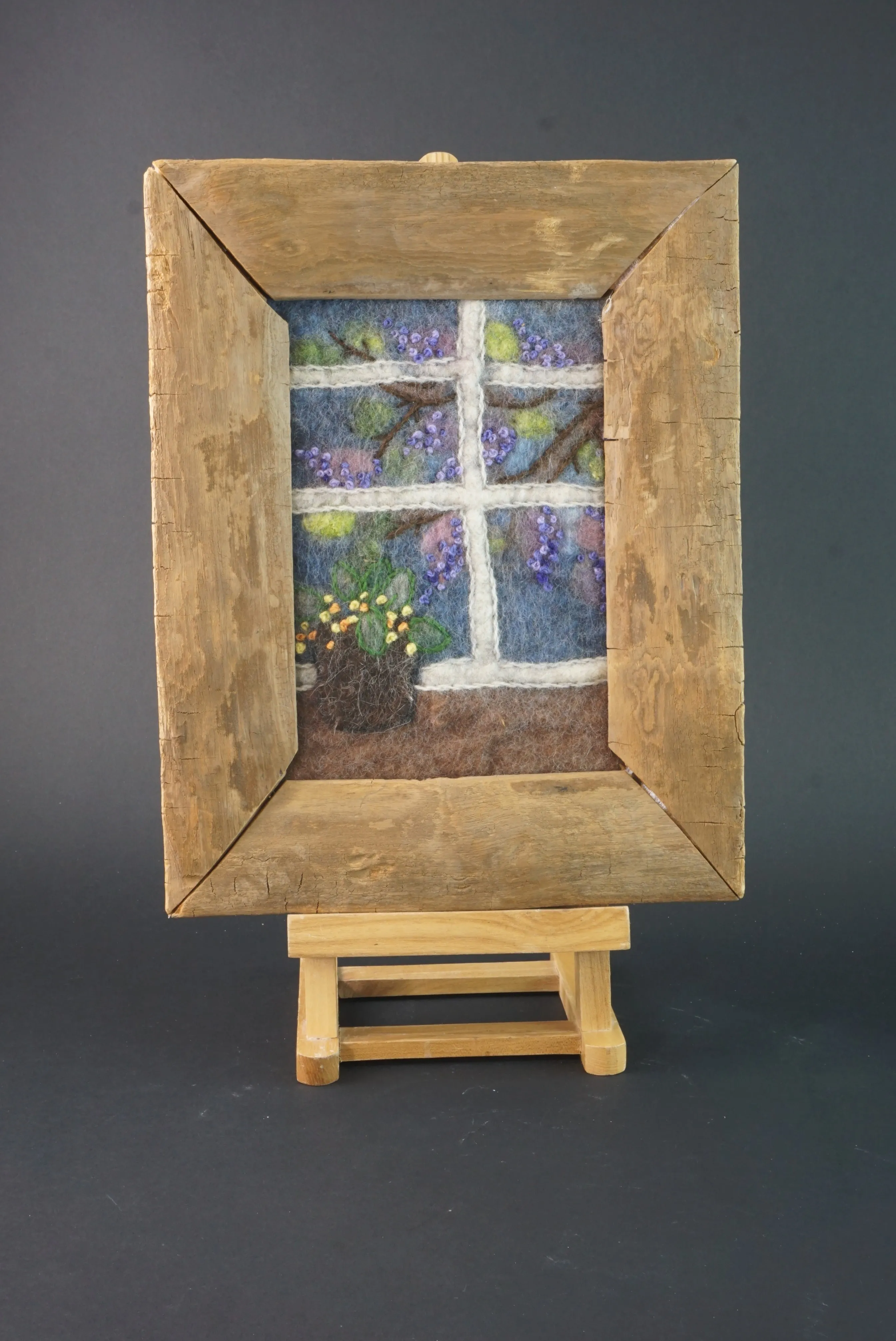 Tavla i nålfiltningsteknik, ull i rustik träram. 27x35 cm
