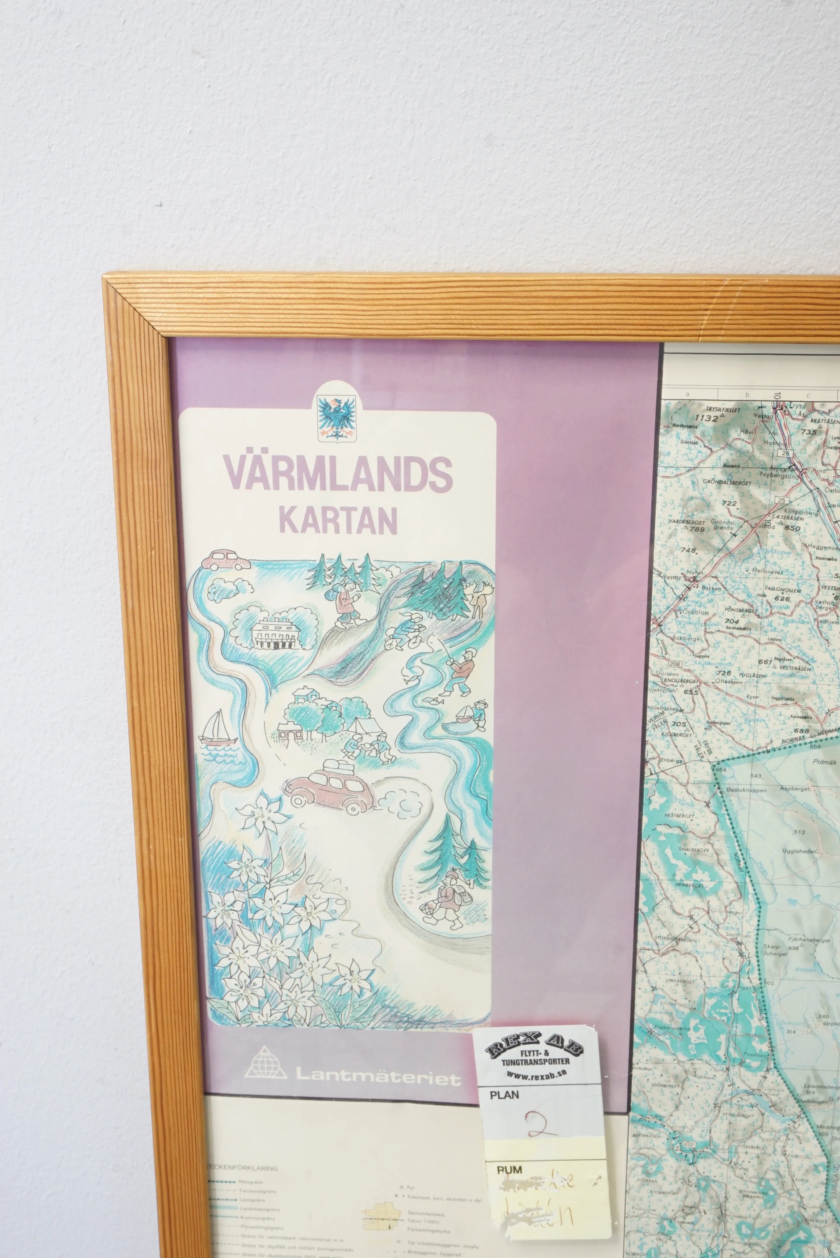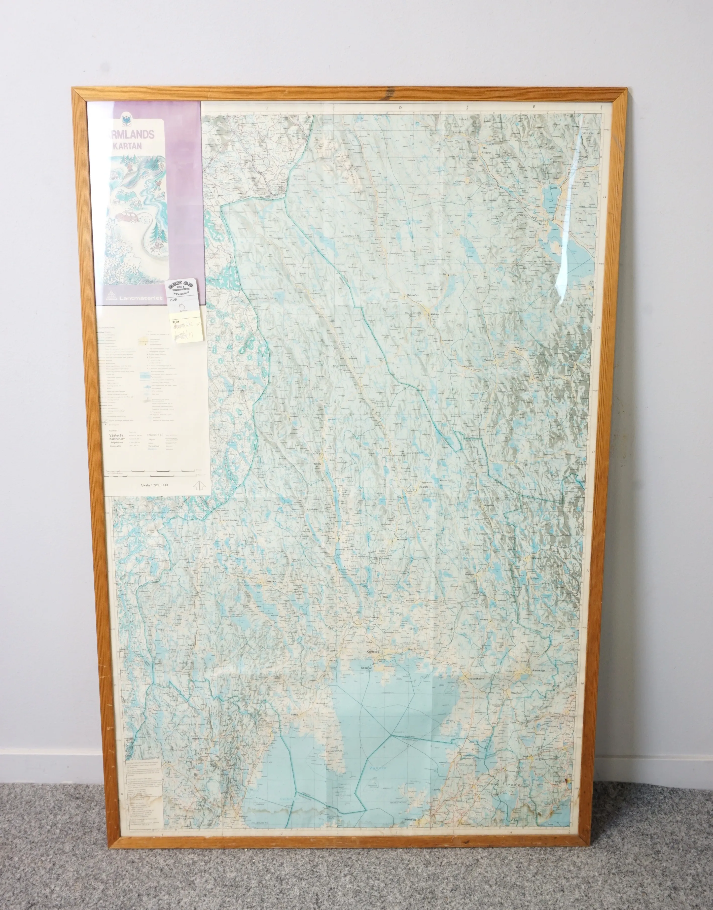 Karta över Värmland, Lantmäteriet. Inramad i fururam. Höjd: 126 cm Bredd: 83 cm