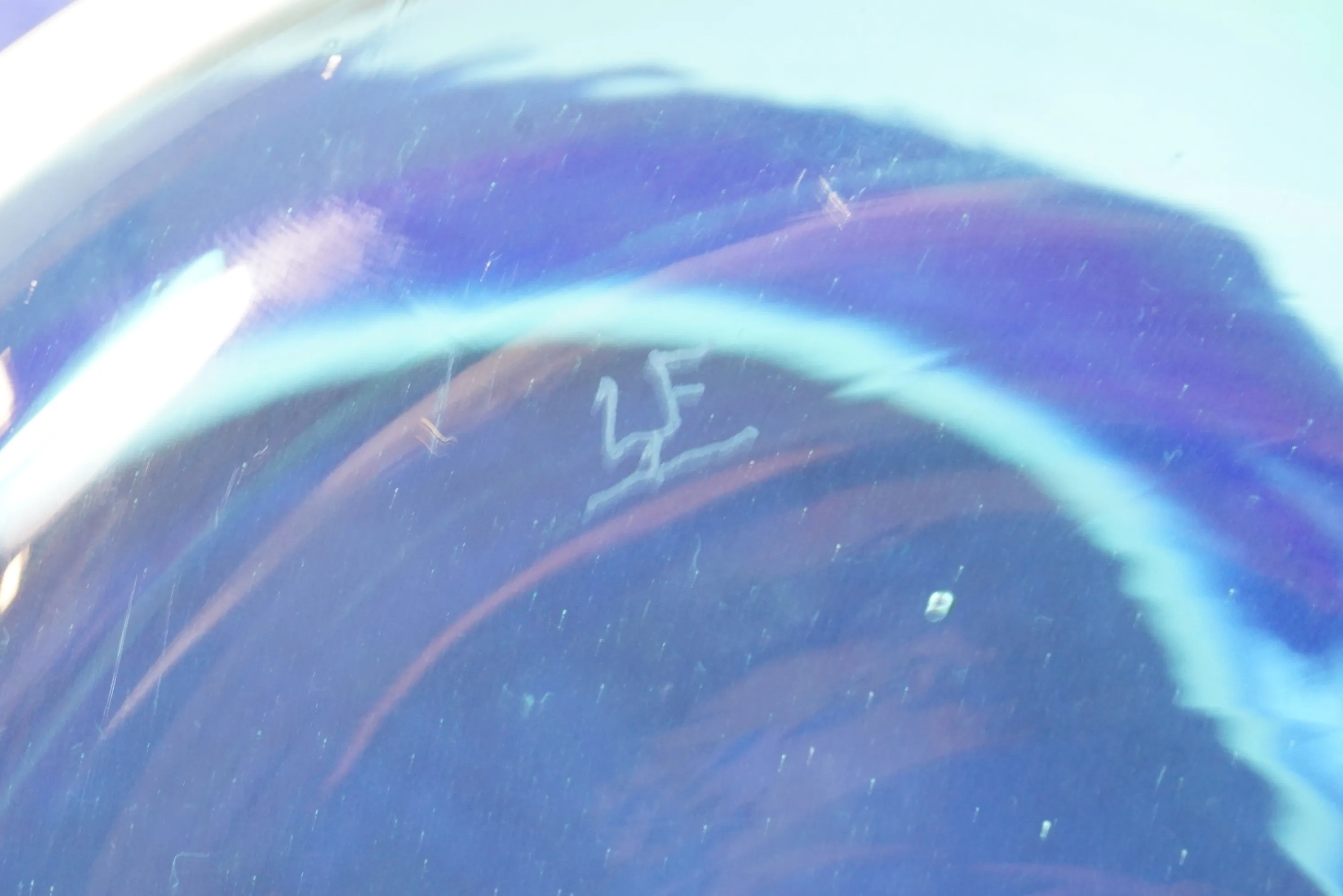 Vas blå grön tonat glas bär signatur