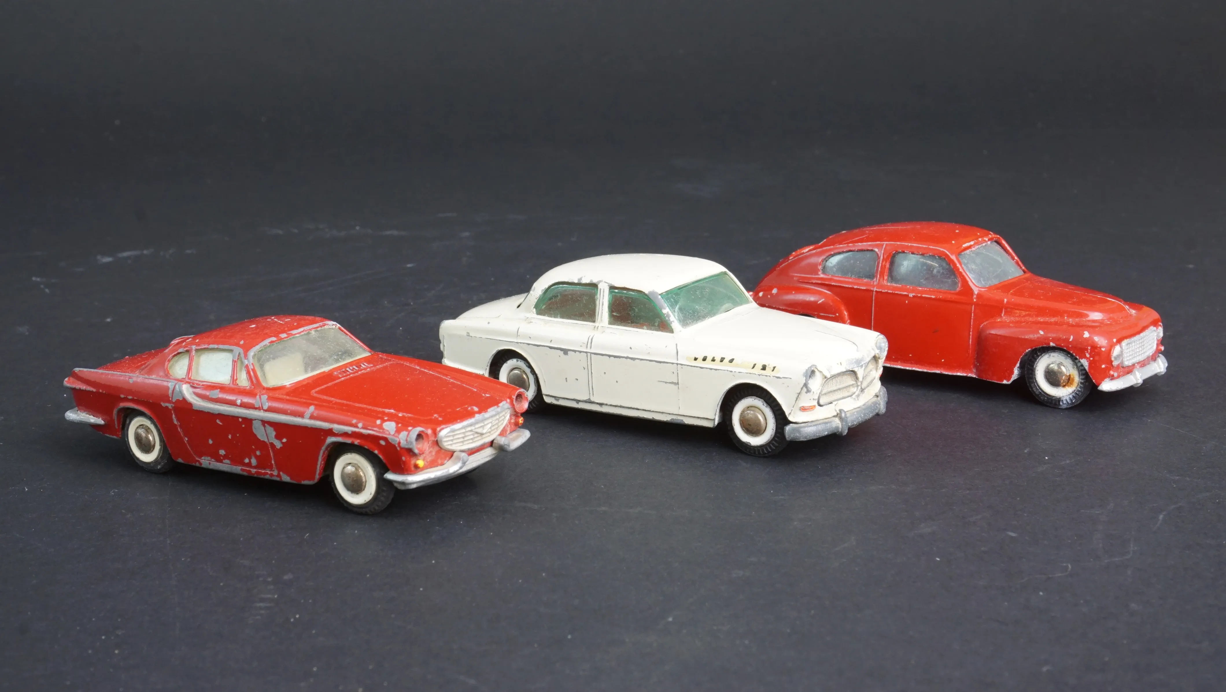 Tre olika modeller: Volvo amazon, PV 544, och 1800. ca. 10cm. Slitage och färgavskav förekommer, se bilder.