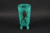 Vas stengods. Grönglaserad med silverdekor. Märkt Gustavsberg, Argenta, A47, made in Sweden.