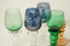 Höjd 16,5-20 cm. Blå glas med slitage.