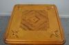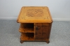 Betsad björk, intarsia. Höjd: 55cm Bredd: 65cm Djup: 65cm Slitage, fanersläpp, fläckar, stötmärken